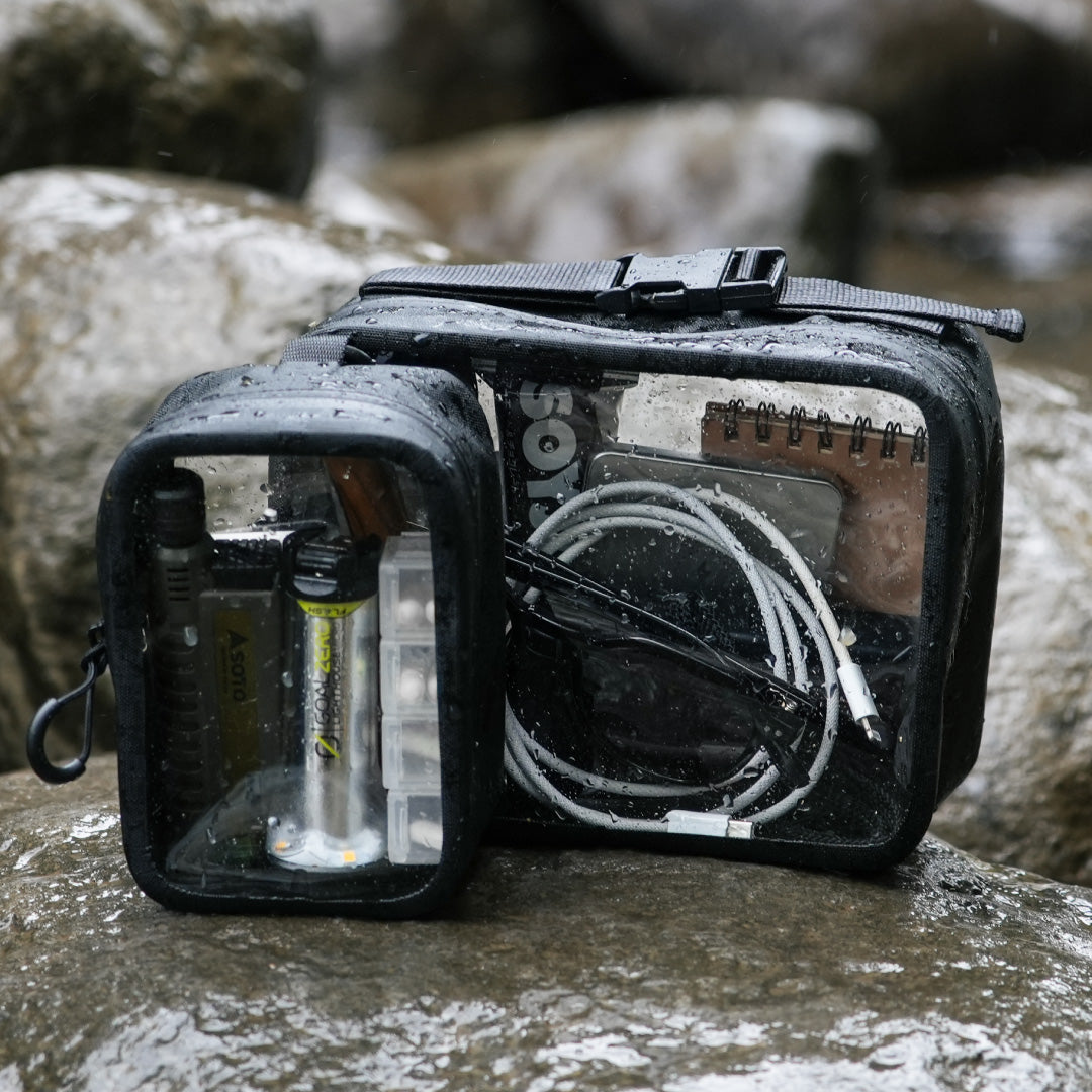 防水能力依舊是它最強大的地方。維持IPX8 國際防水認證(在一公尺水深中可維持 60 分鐘完全不進水,是真正「整體防水」的結構)。材質選用420D 高強度雙面 TPU 複合尼龍布,搭配氣密防水拉鍊,不論收納地圖、藥品、或電源配件,都能安心保護,連你的娃包都不用再擔心被淋濕。