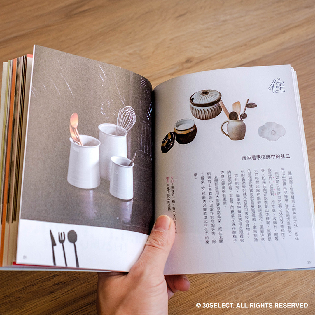 除了名家作品介紹外,也提供完整的挑選器皿的基礎知識。從器皿的尺寸、形式、材質、釉藥、裝飾技法,以及器皿在日本的發展歷史、主要產地到日常的器皿保養方式⋯⋯在進入器皿世界前,一口氣補足最基本知識。