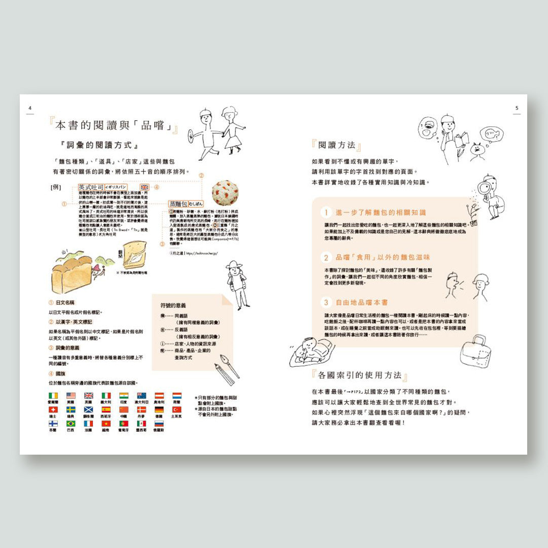 - 451個麵包名詞:涵蓋材料、工藝到歷史文化,完整展現麵包多樣風貌。