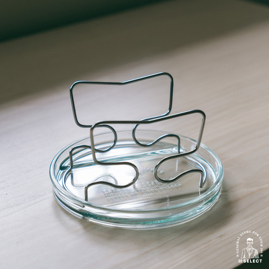 這款日本餐具大廠 AUX 的掛耳咖啡架,造型簡約、重量輕巧,由不鏽鋼咖啡架搭配一個看似玻璃、其實是耐熱輕量樹脂的托盤組成。