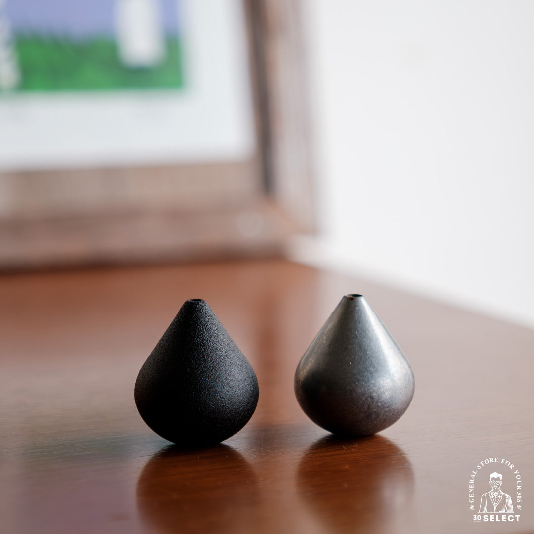 - 水滴造型線香座有 RAW未處理原色與霧黑兩款,接灰盤皆為不鏽鋼原色