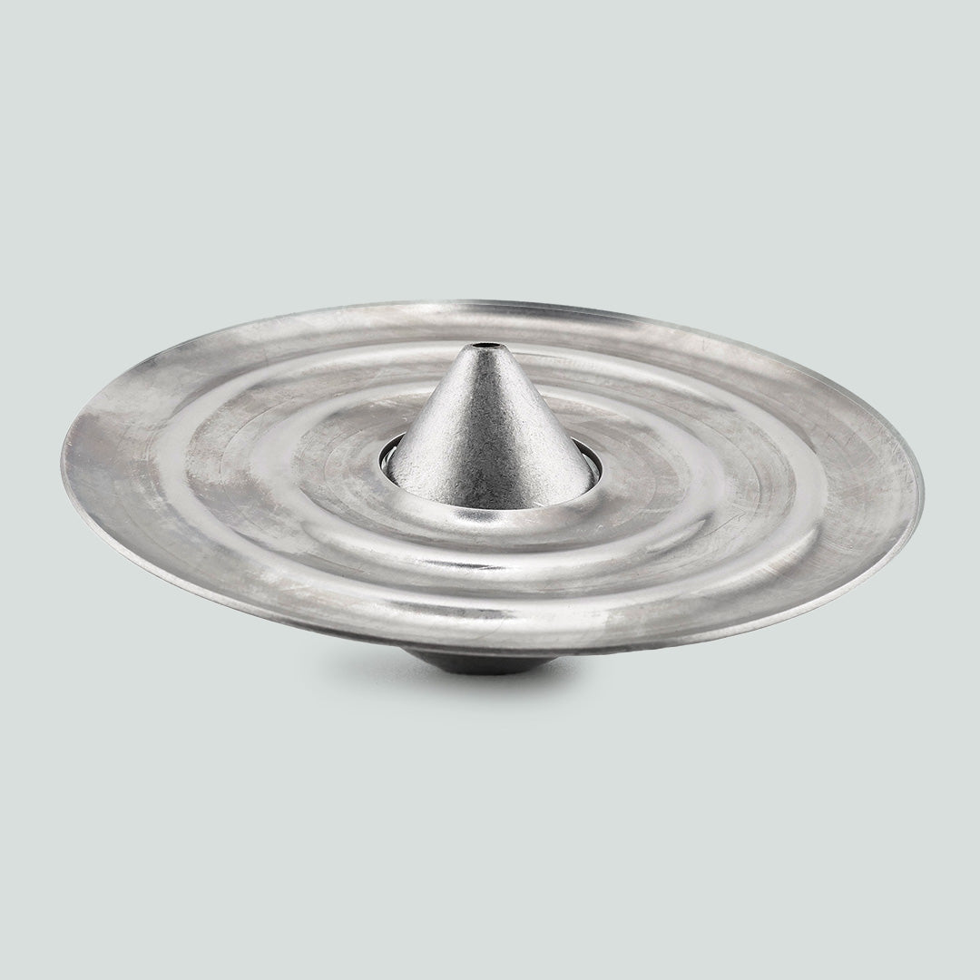 Drop 線香座由 水滴形底座 與 同心圓不鏽鋼接灰盤 組成。設計靈感來自水滴落下水面後,一圈圈向外擴散的漣漪,富有詩意與禪意的設計。