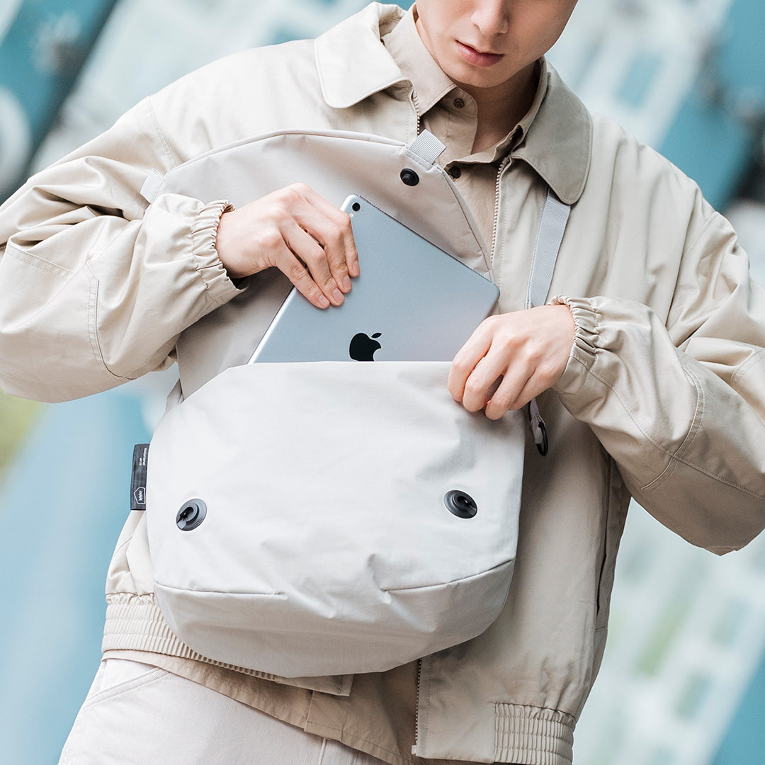 bitplay 這款改良款的Essential隨行郵差包,將容量縮小成更適合日常使用的 6.5L, 兼具容量與收納便利性,設計兼顧日常通勤與短途移動需求,對平板的安全性也更可靠。防水面料搭配 Fidlock 磁扣開闔,方便快速取物又能保持安全。