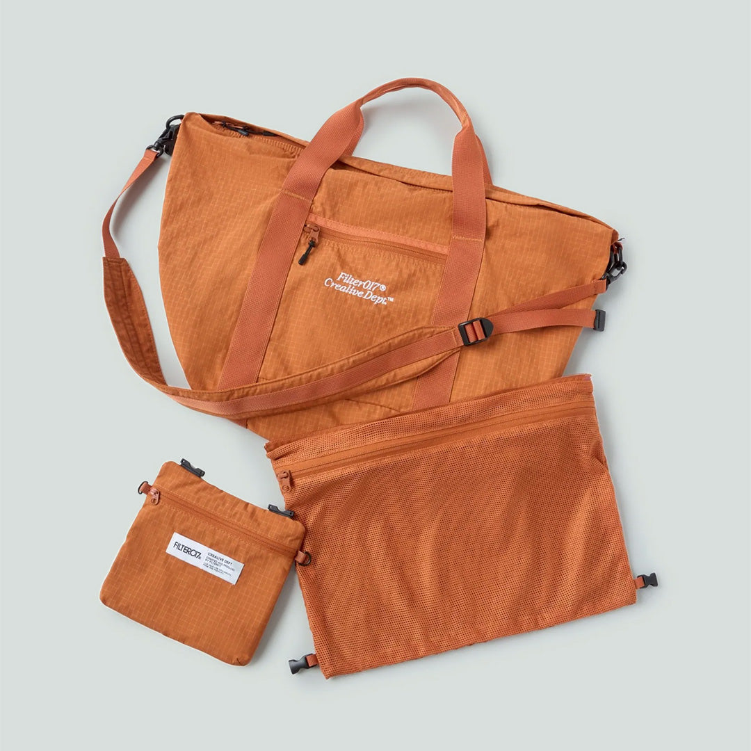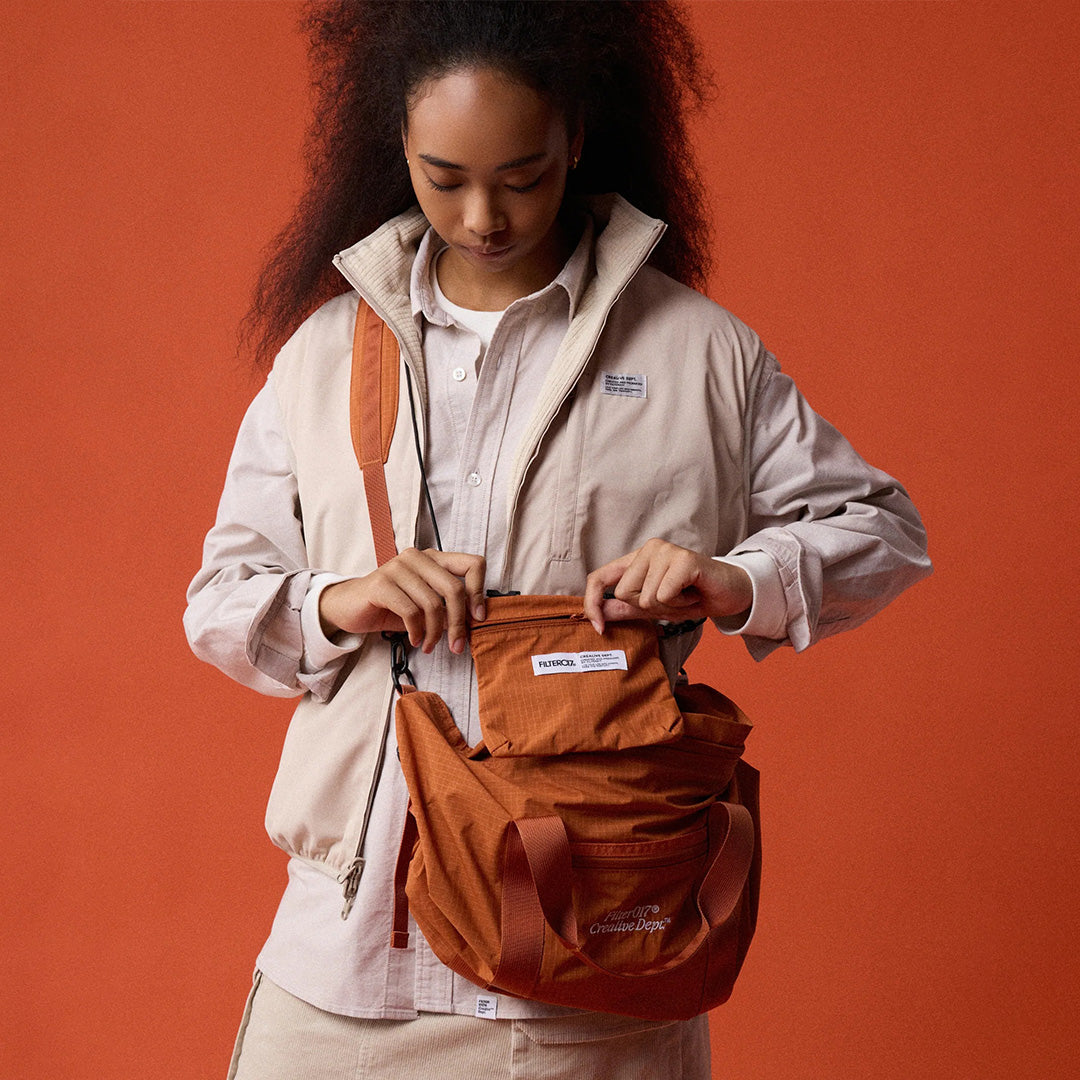 主體旅行包+可獨立使用的隨身小包,還有一個網布收納袋,依照當天行程與需求自由搭配,等於一款包就能變化出三種使用方式。