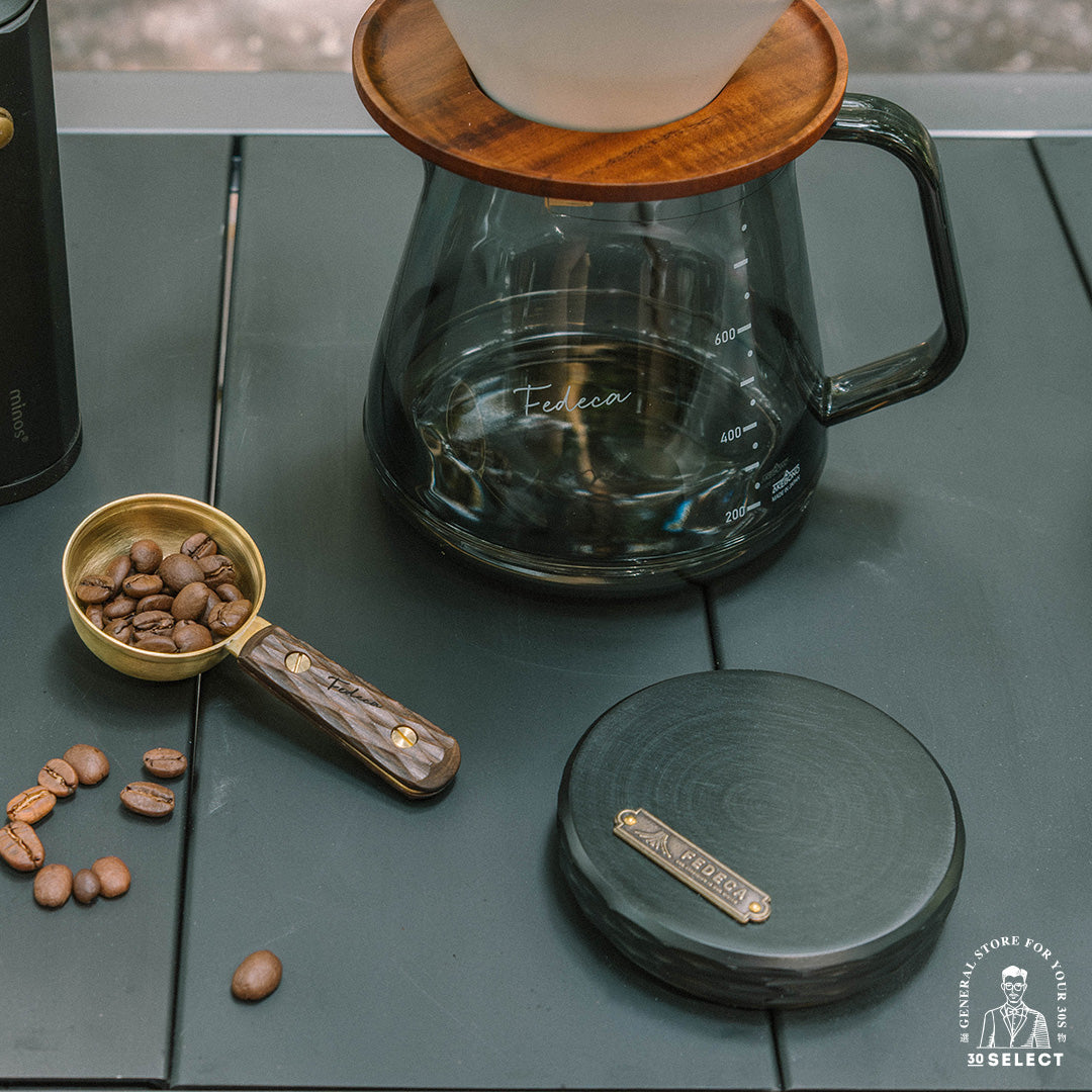 每一個蓋子皆由整塊材料車削加工,再經手工打磨拋光,質感非 3D 列印可比擬。頂端還配有 FEDECA 銅牌,適用於 400ml 與 750ml 兩款咖啡下壺,讓整組露營手沖配件的帥度立即升級。