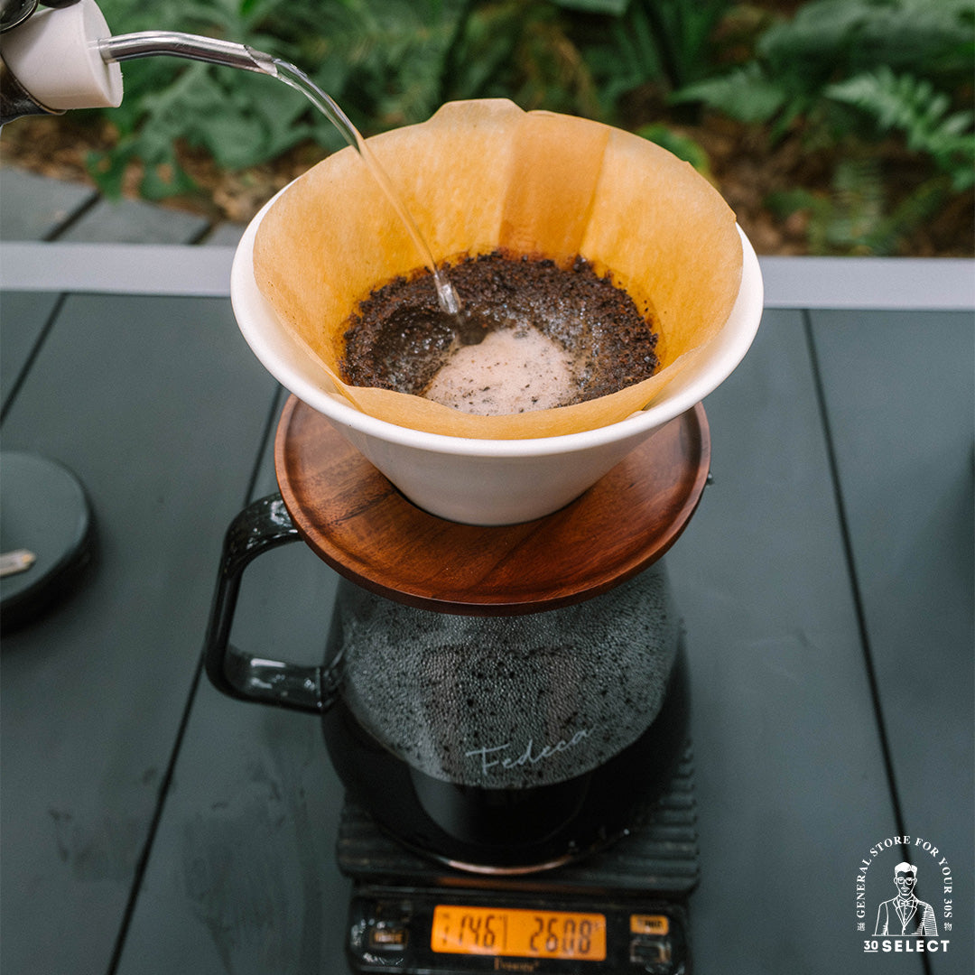 此款共有 400ml 與 750ml 兩種尺寸,分別適合 1~3 人與 2~5 人的咖啡濾杯,並附有上蓋,使用起來更便利。實際搭配深澤直人的「相思木白瓷咖啡濾杯」,不只尺寸完美,整體視覺也非常合拍。