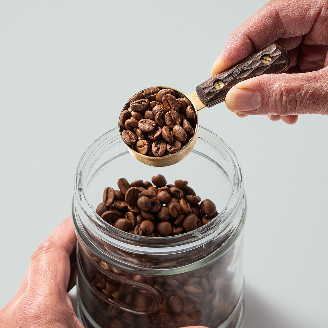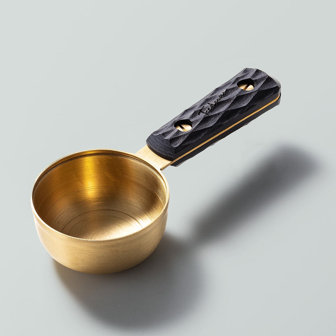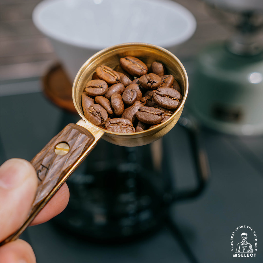 短柄設計方便又聰明,能直接放進咖啡豆罐中收納,節省空間;「名栗」紋理的手柄則讓握感更穩定。每一勺約 10g 咖啡豆。