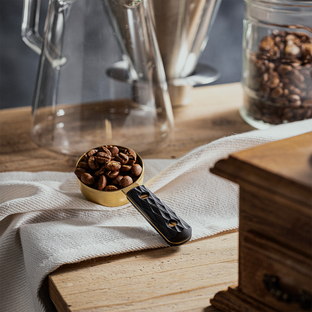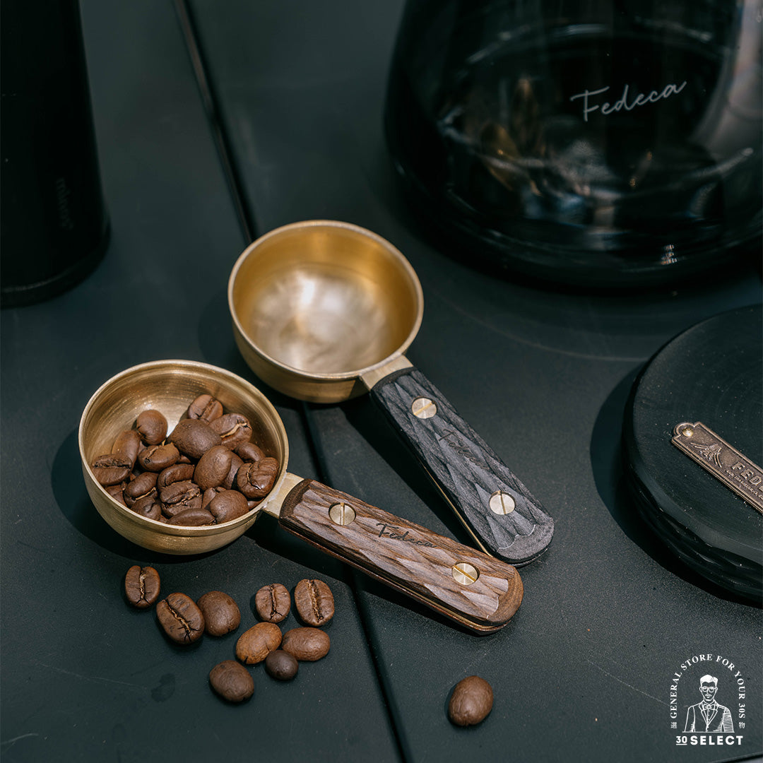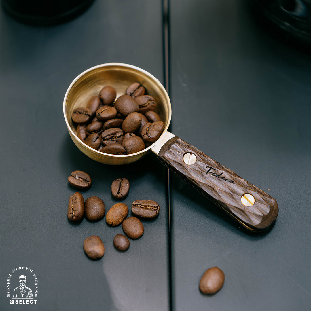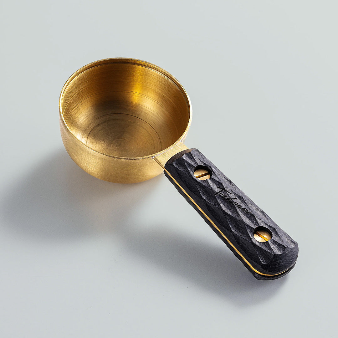 短柄設計方便又聰明,能直接放進咖啡豆罐中收納,節省空間;「名栗」紋理的手柄則讓握感更穩定。每一勺約 10g 咖啡豆。