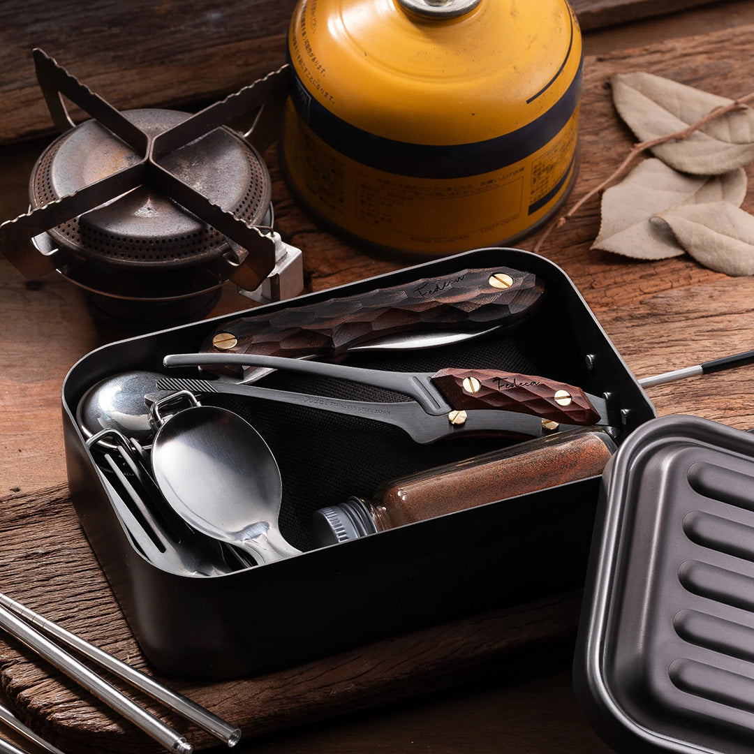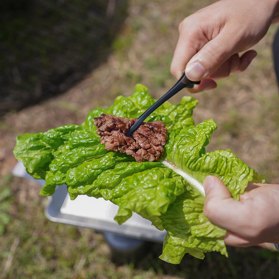 長度只有 15 公分,小巧到能直接收進 號稱為「煮飯神器」的 Mestin 便當盒裡。對於野營、solo camp、機車露營這種講求輕量化的場合,簡直完美。除了料理,它細尖夾口設計讓它不只好夾菜、夾肉、吃麵都超順手,甚至連夾洋芋片、花生這些零食都很方便,手不沾油,乾淨又優雅。