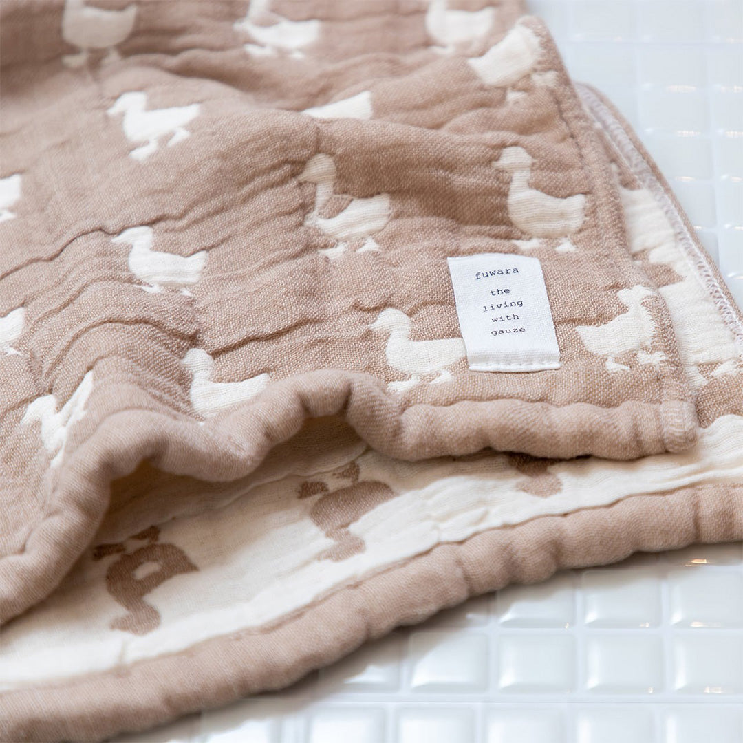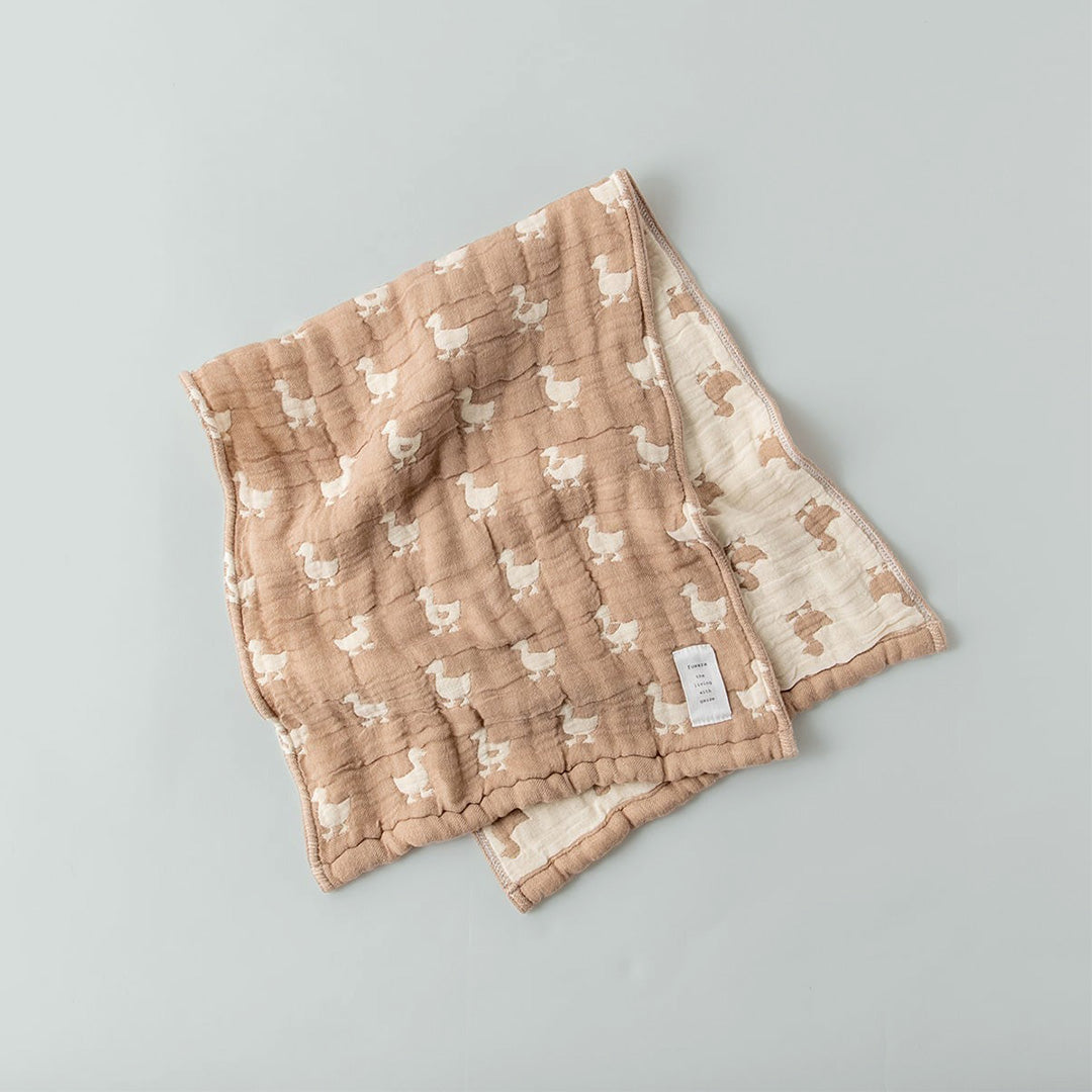 使用六層不同花色的紗布交織而成,100% 純棉材質,質地輕柔,對肌膚比較敏感的人,或是給小朋友使用,也都很剛好。