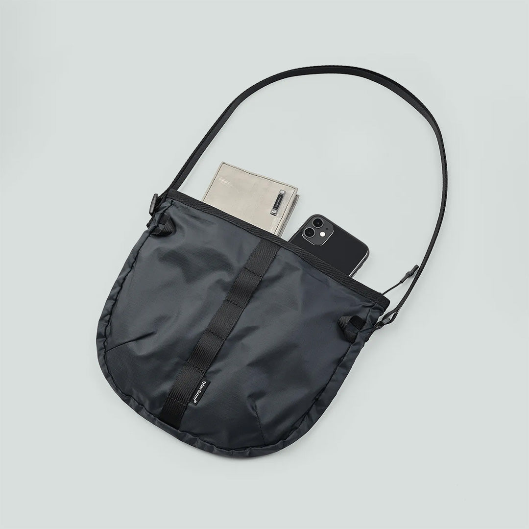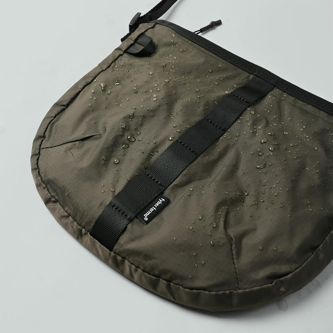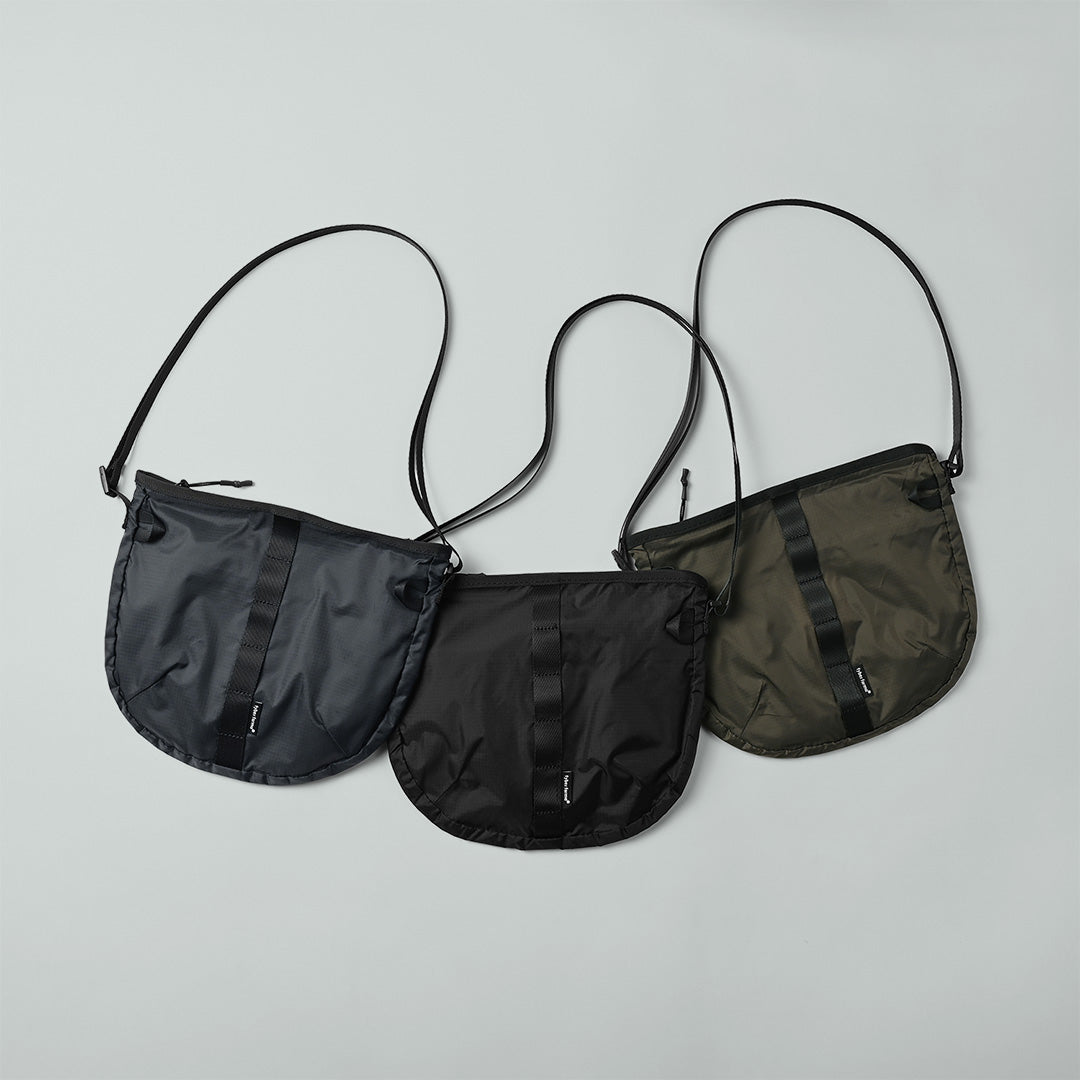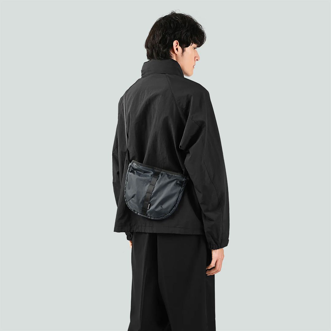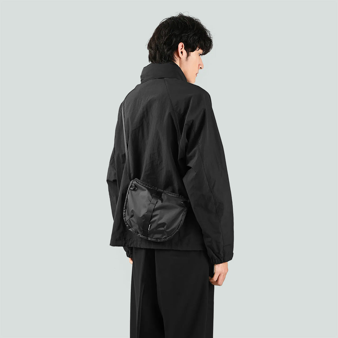 面料經防潑水處理可應付日常防雨,超輕量薄型尼龍可隨意翻摺方便收納,並具有抗撕裂之特性;圓弧口袋形的包體設計,視覺量感輕盈,搭配一組可調式肩背帶以及兩側延伸織帶掛耳,可自行搭配扣件當胸前包或後背包內的副包使用。