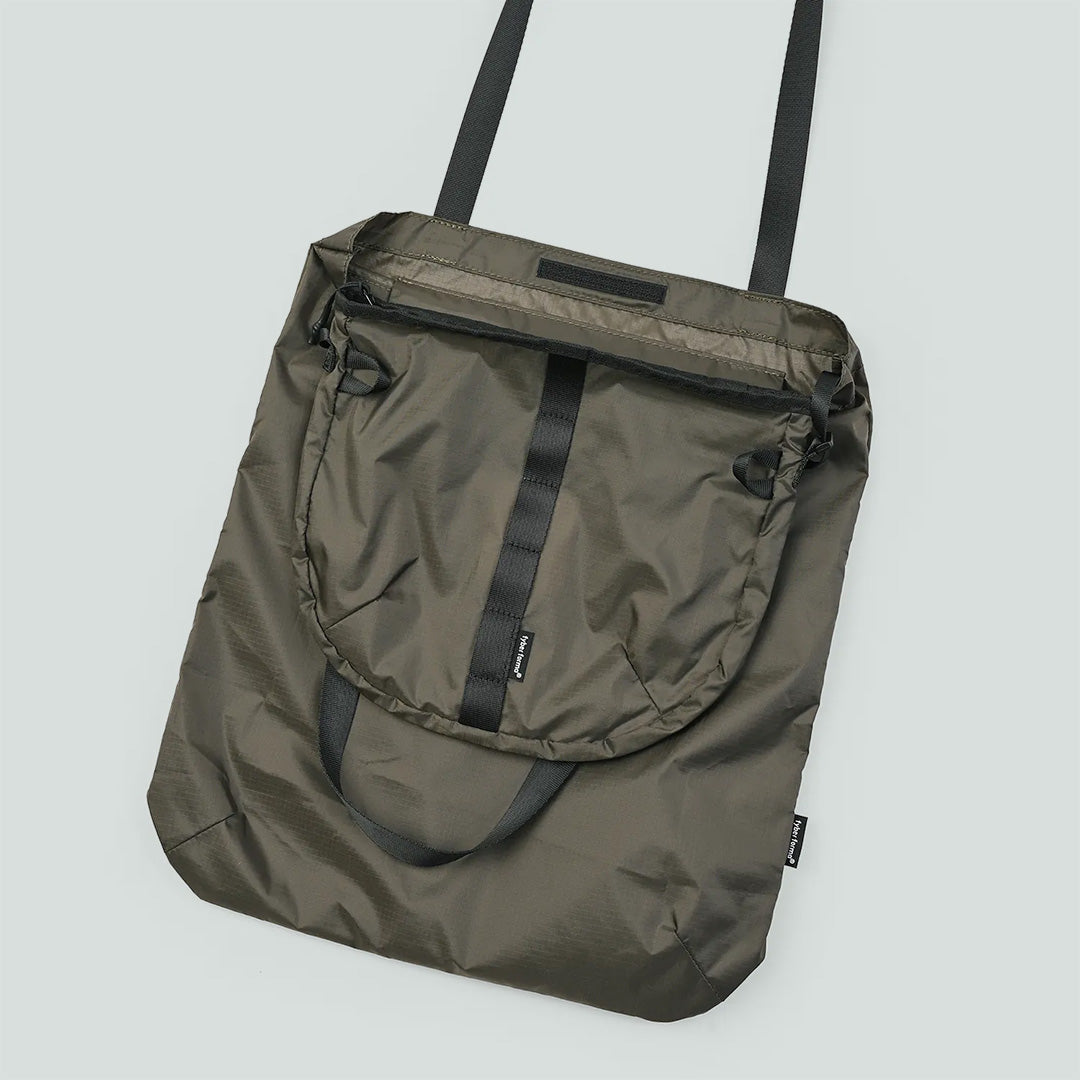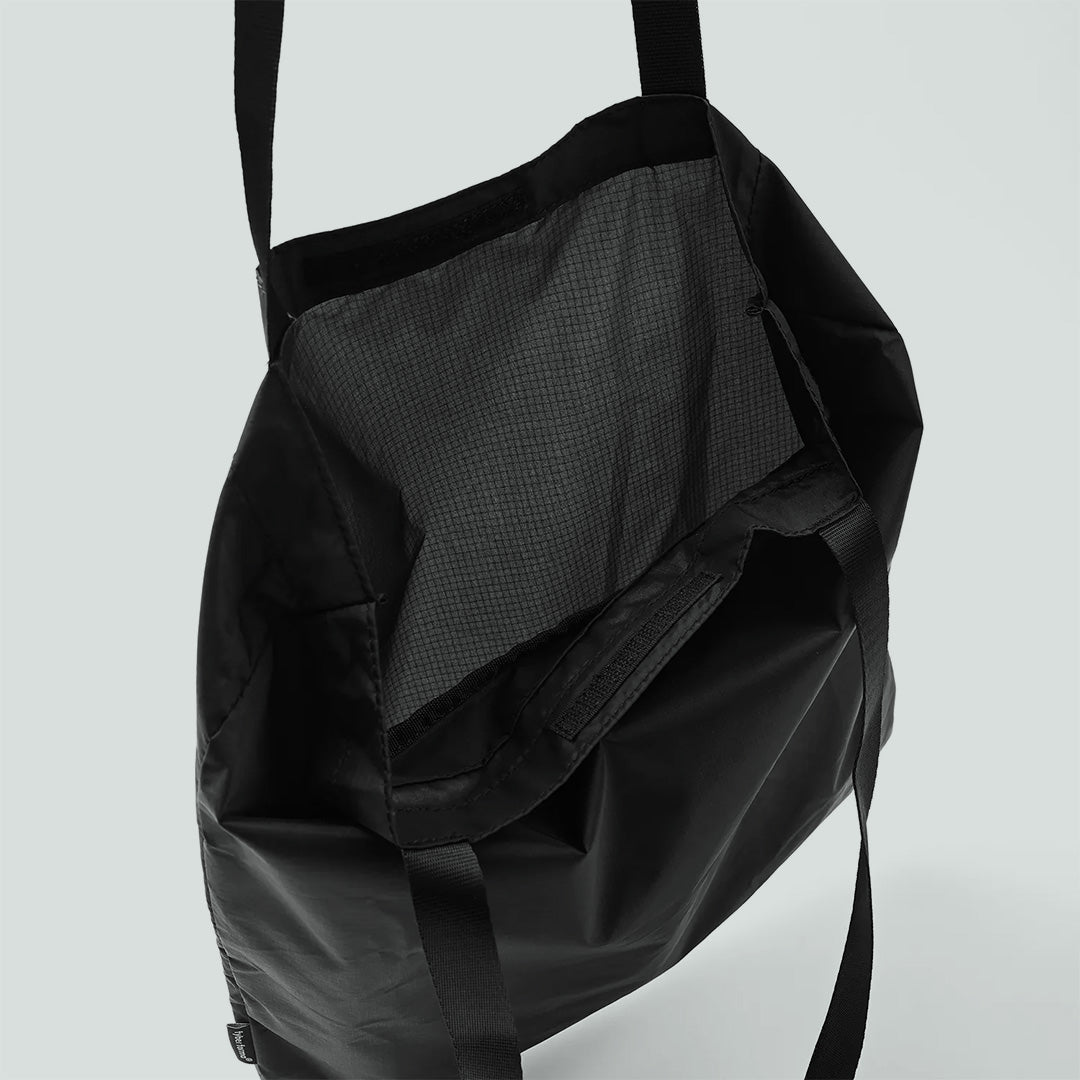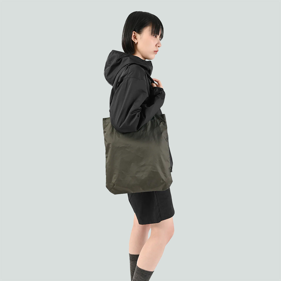 這次新的V2版本,將主面料升級成210D輕量格紋尼龍, 質地較為硬挺,並提升耐用度,擁有出色的防潑水性能, 同樣維持輕量以及易翻折收納等特性。另外也將內部的托特袋尺寸加大, 並加寬肩背提把的間距,裝載更多物品之餘也更好單肩配戴。
