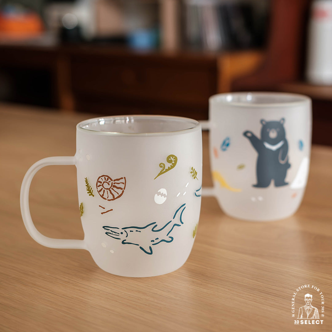 這次共推出兩款設計:「史前古生物」與「臺灣特有種」。這款「史前古生物」以遠古時代的生物為主題,挑出「菊石、魚龍、暴龍、翼手龍、蕨類」作為代表,在杯子上進行了一場史前考古探索!