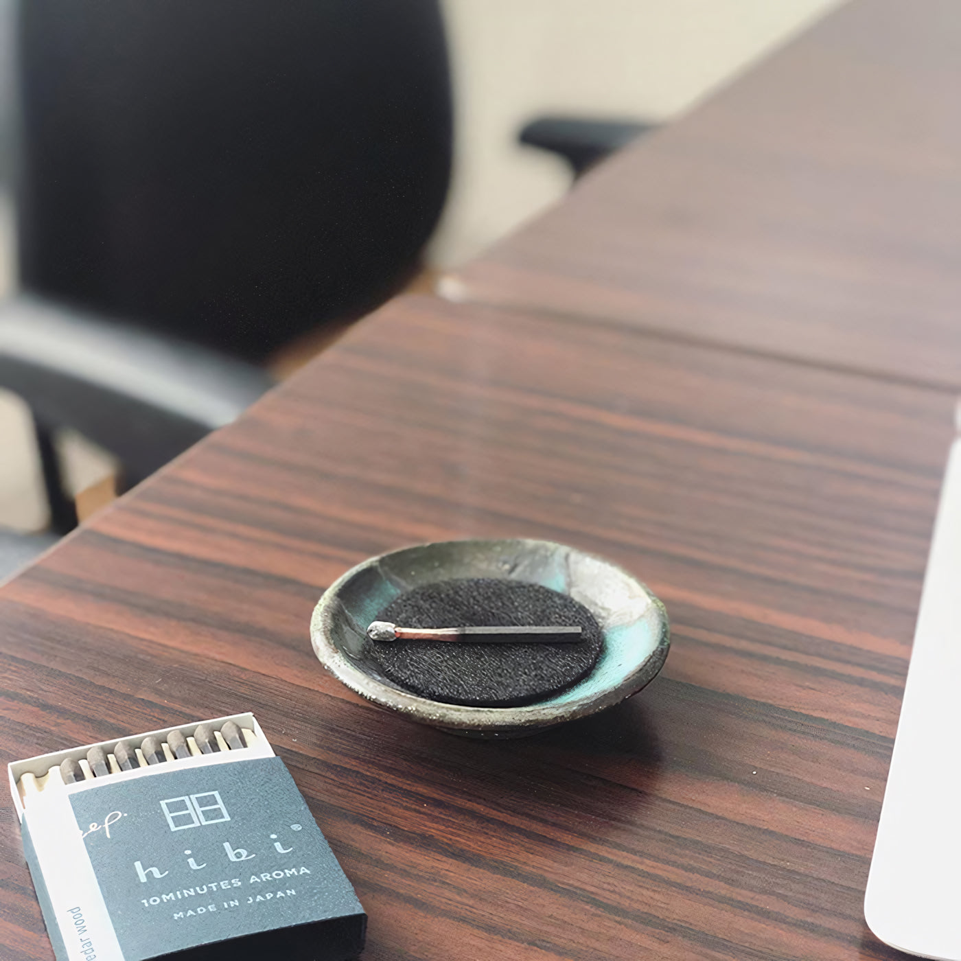 用法就像火柴,輕輕劃燃後,直接放置專屬黑色圓墊上,一根約莫10分鐘的時間,便有明顯香氣,卻不會過於濃烈,適合小空間使用,或者空間有異味時,點上一根可立即消除異味。