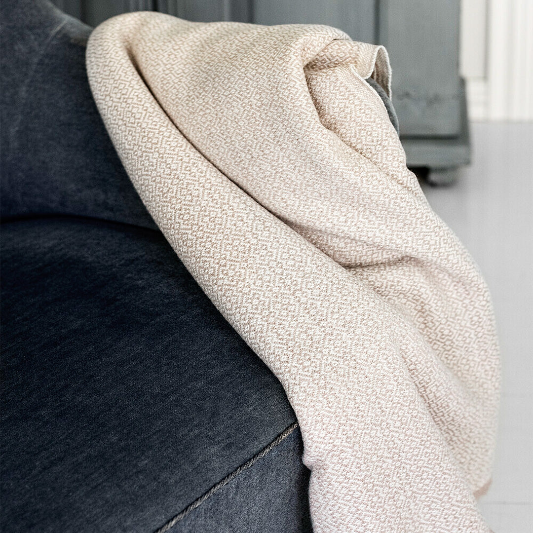 擔心羊毛會刺刺,或怕悶熱的話,那「美麗諾羊毛」會大大顛覆你對羊毛的刻板印象。LAPUAN KANKURIT的頂級「美麗諾羊毛」質地輕薄,手感柔軟,常常讓人誤會是一般棉毯,也是品牌羊毛製品中最輕柔,適合直接披在身上保暖,完全不會有刺癢的感覺。另外美麗諾羊毛具有調濕功能和抗菌除臭效果,長時間披在身上也能保持舒適。