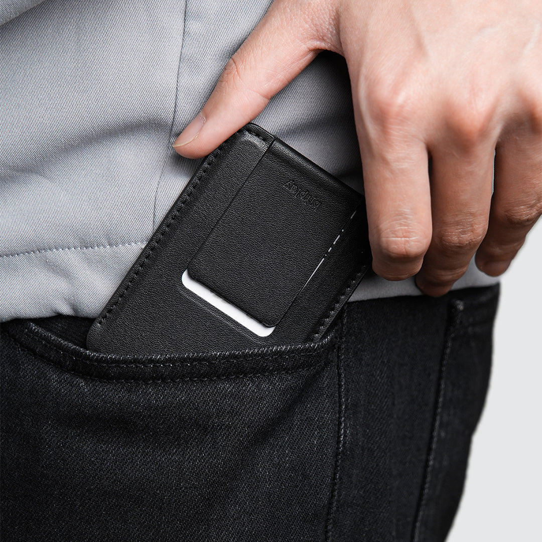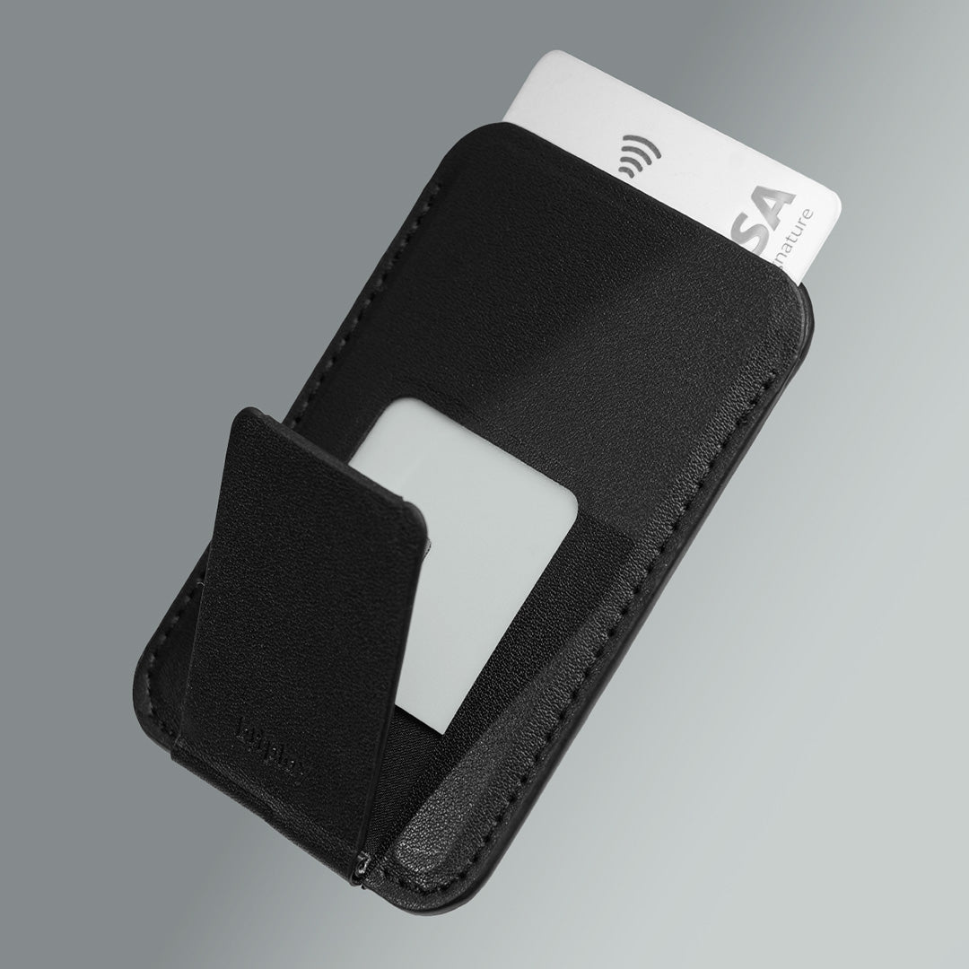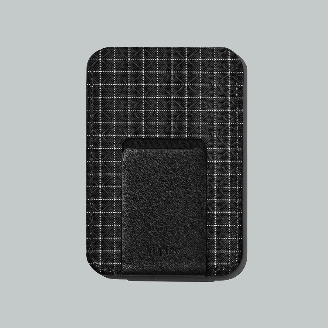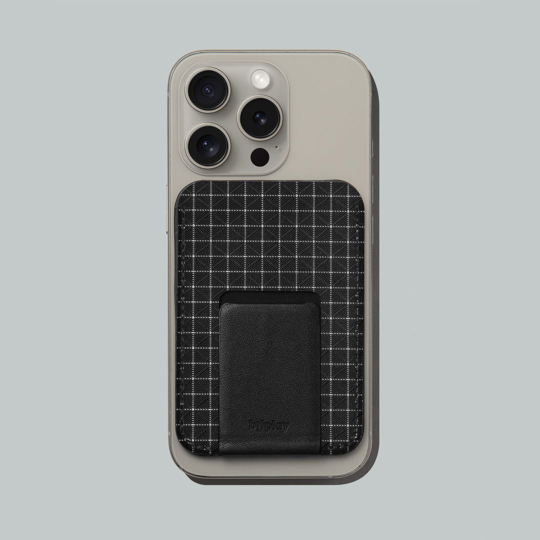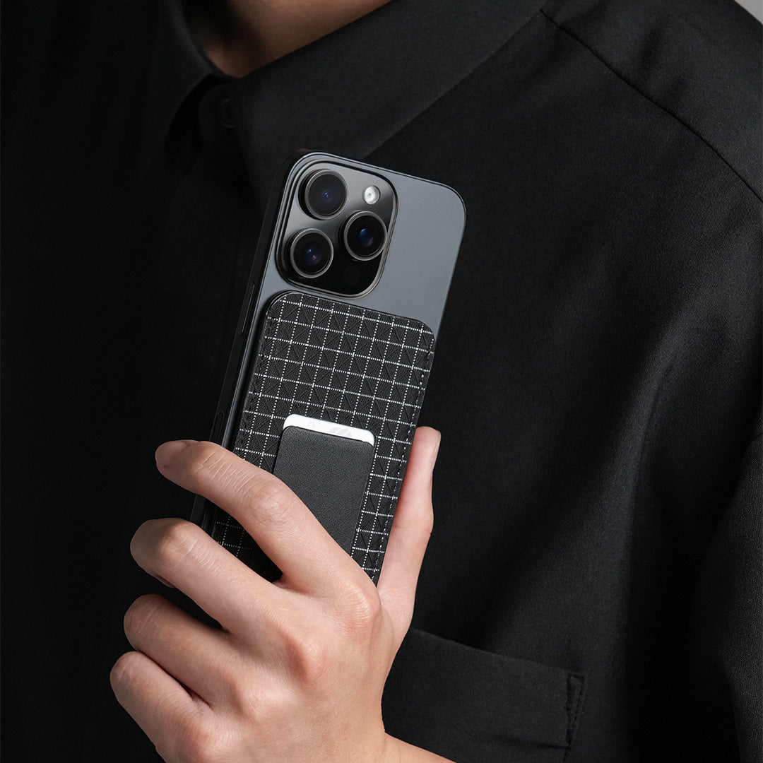 設計上特別強調「輕薄」,卡夾僅能放入一張手中最常用的卡片,這樣才不會讓手機鼓鼓的,維持俐落的隨身感(若想要收納多張卡片,請看「iPhone磁吸卡套立架」)。外層選用帶有細緻手感的布料,提供格紋與黑色兩種款式,低調卻有質感。