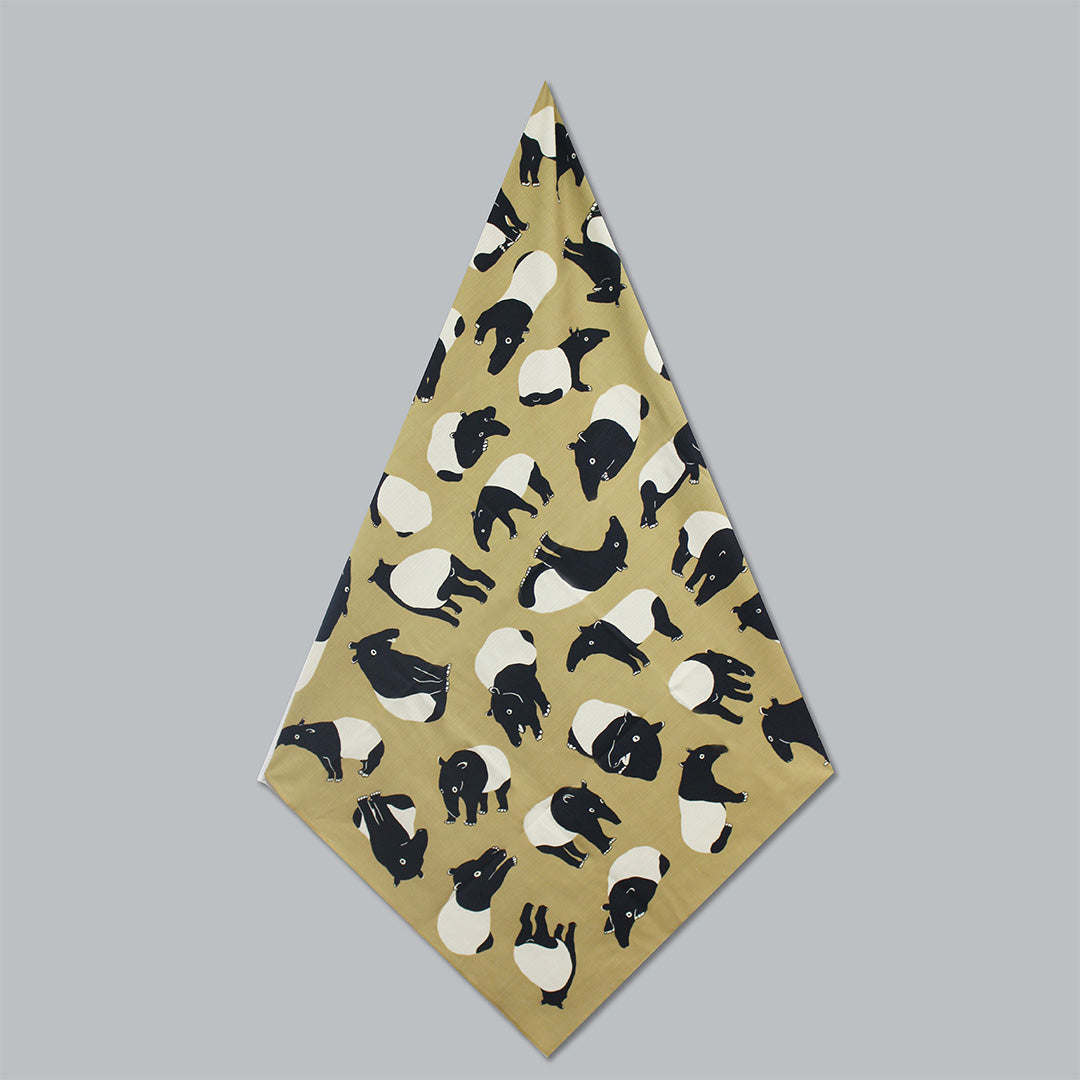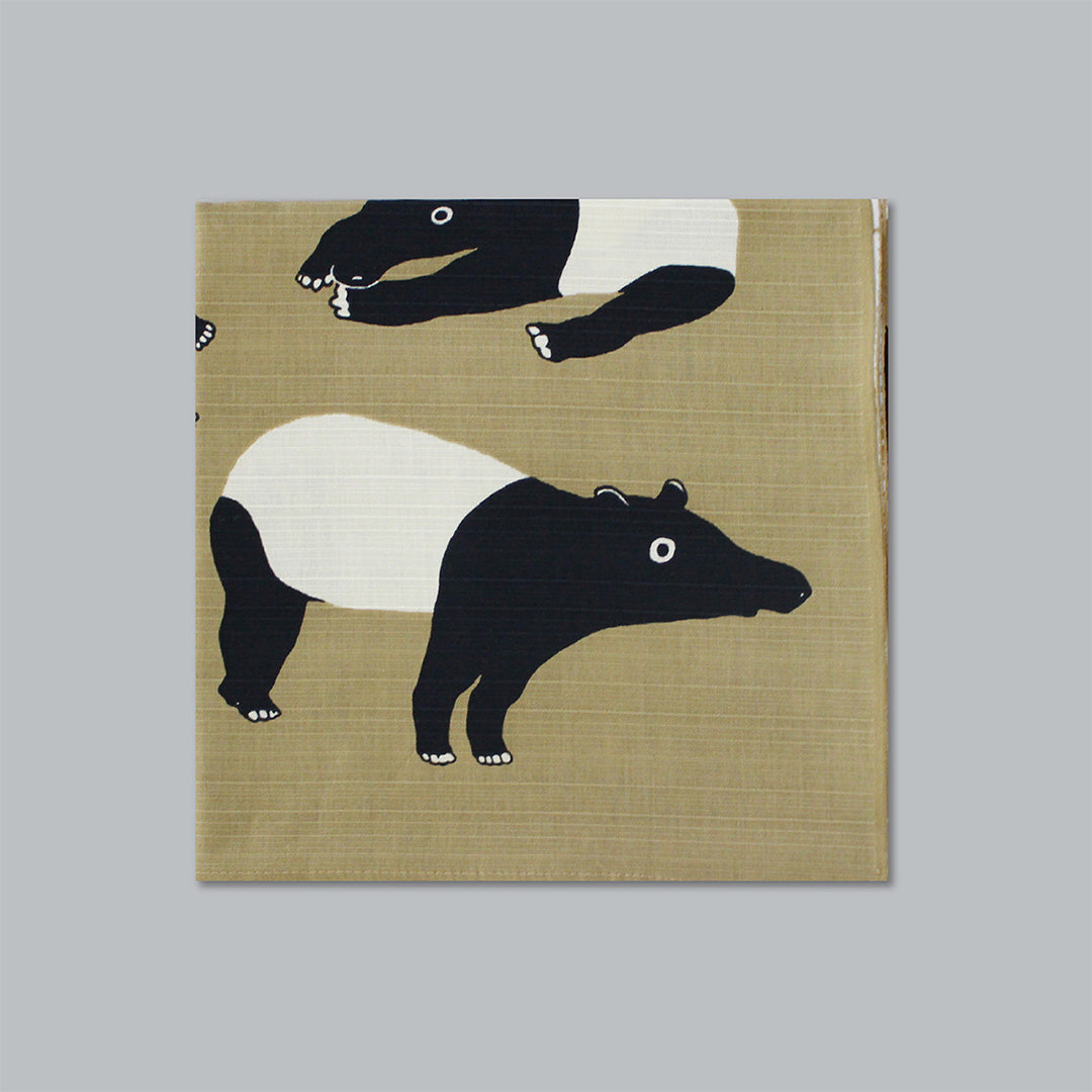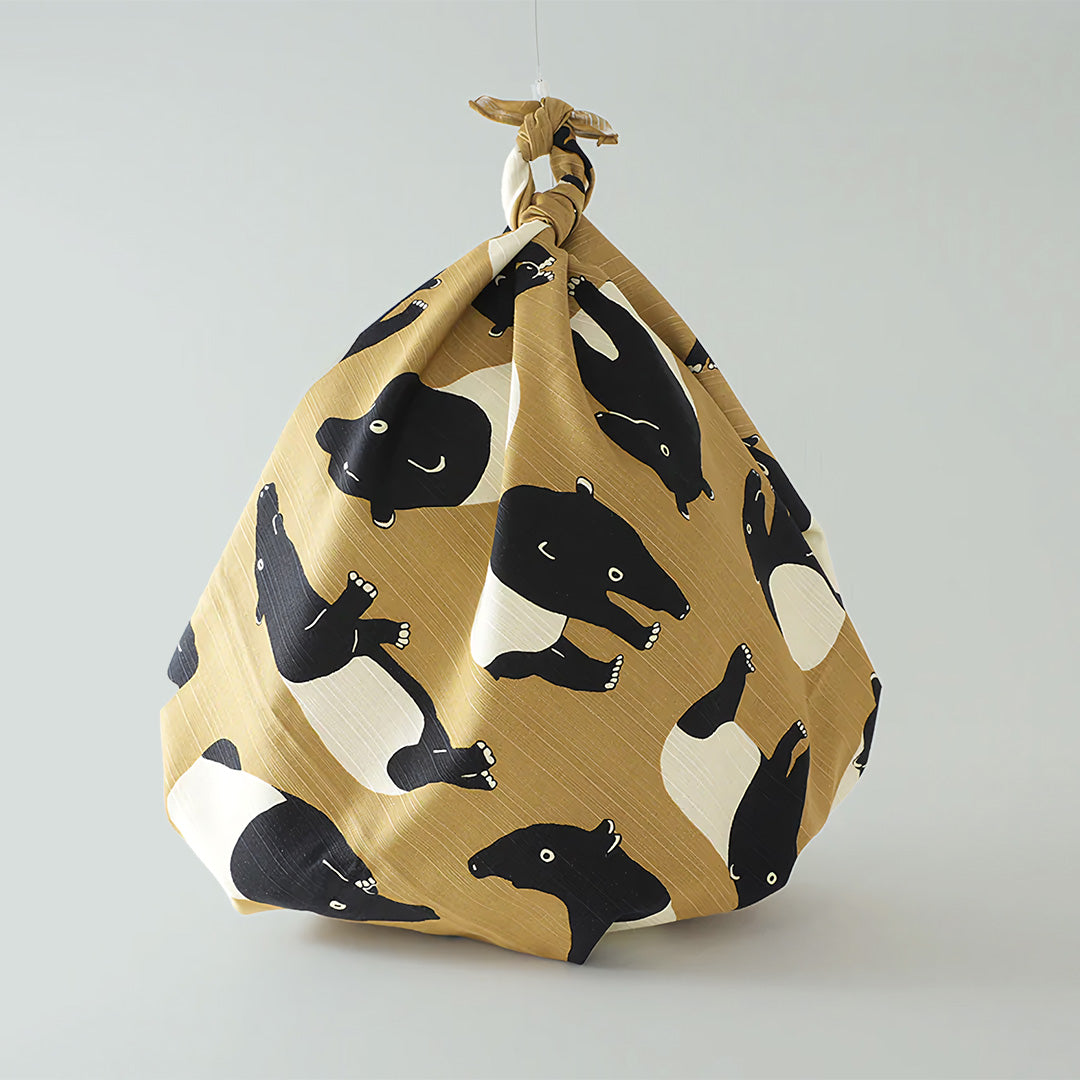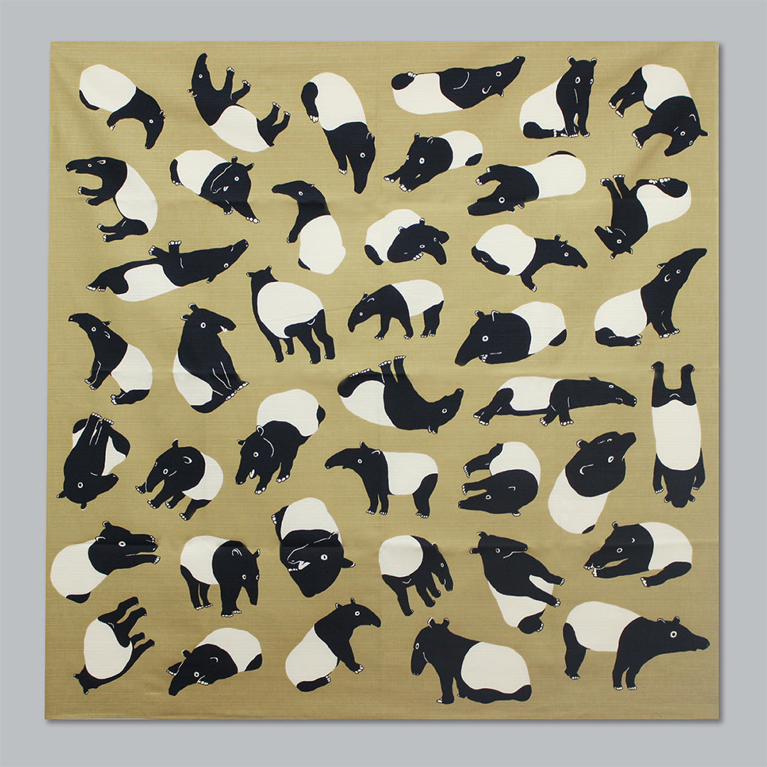 這款約 90 公分大小的風呂敷,以馬來貘為設計主題。傳說中,馬來貘是釋迦牟尼的坐騎,其白色身體象徵被佛祖坐過而潔白;在日本,也有寺廟屋簷下雕刻馬來貘,作為驅邪的象徵。