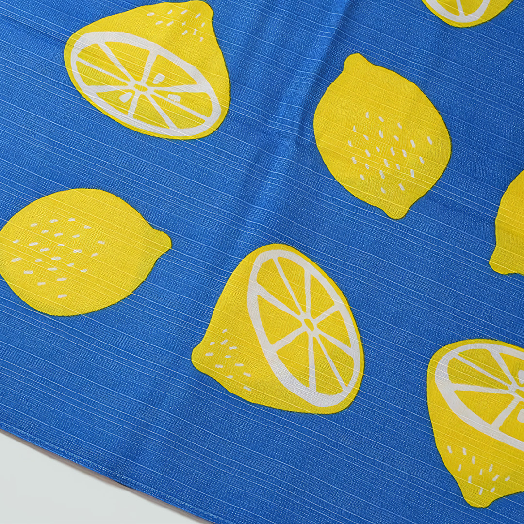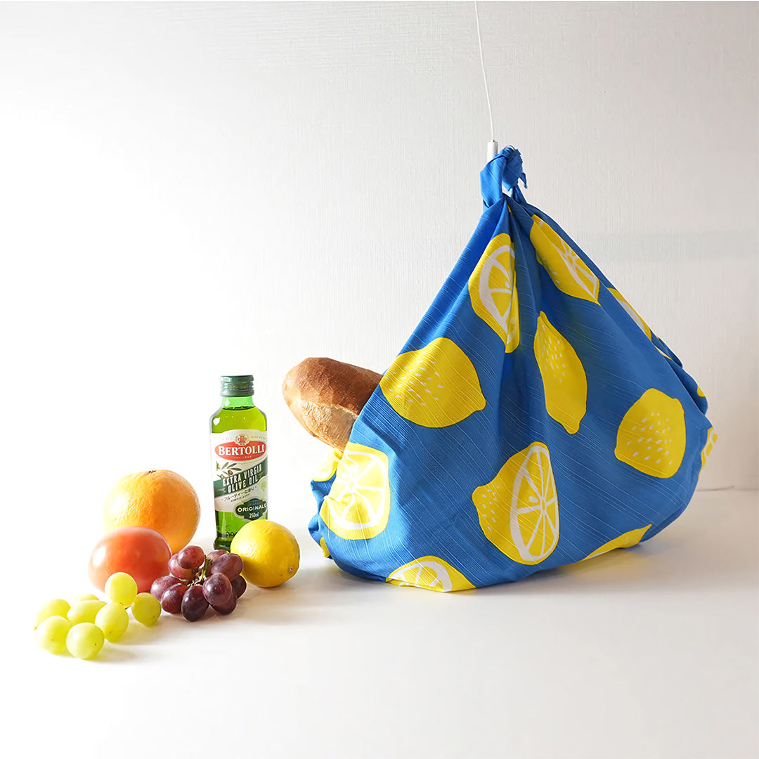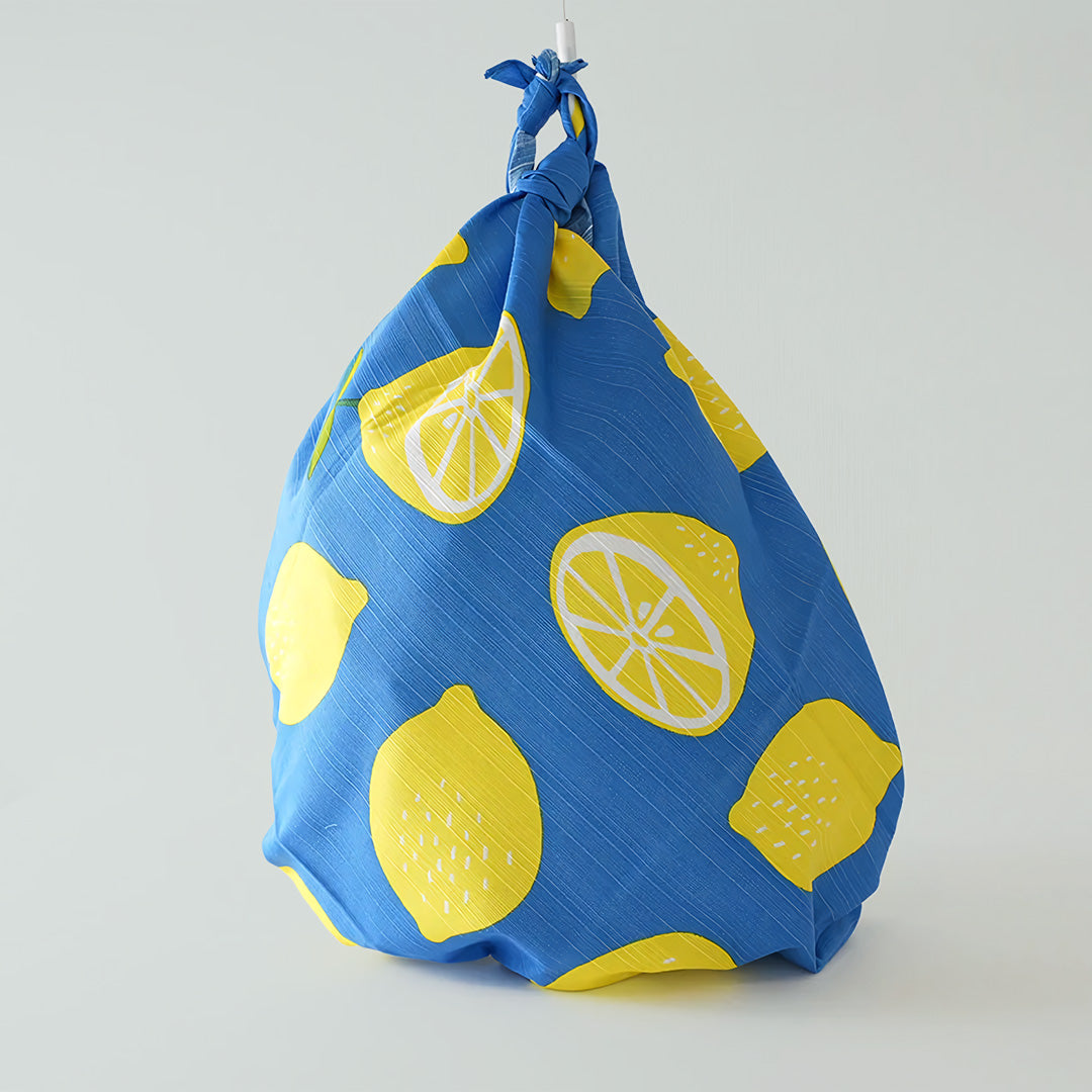 風呂敷上的檸檬排列大方清新,點綴的檸檬葉綠色增添亮點。不論是用來包禮物、當購物袋,或是搭配簡單服裝使用,它都能成為造型中的吸睛小細節。