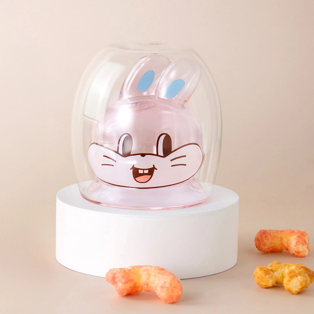 哎呦喂啊~這真的是可愛爆擊耶!!竟然把 noii noii 經典的「阿咪」兔兔與「SOSU」松鼠做成立體雙層杯,不是圖案印在上面而已,而是直接把角色裝進透明玻璃裡,平時是可愛擺飾,轉個身就變成實用的日常器皿。