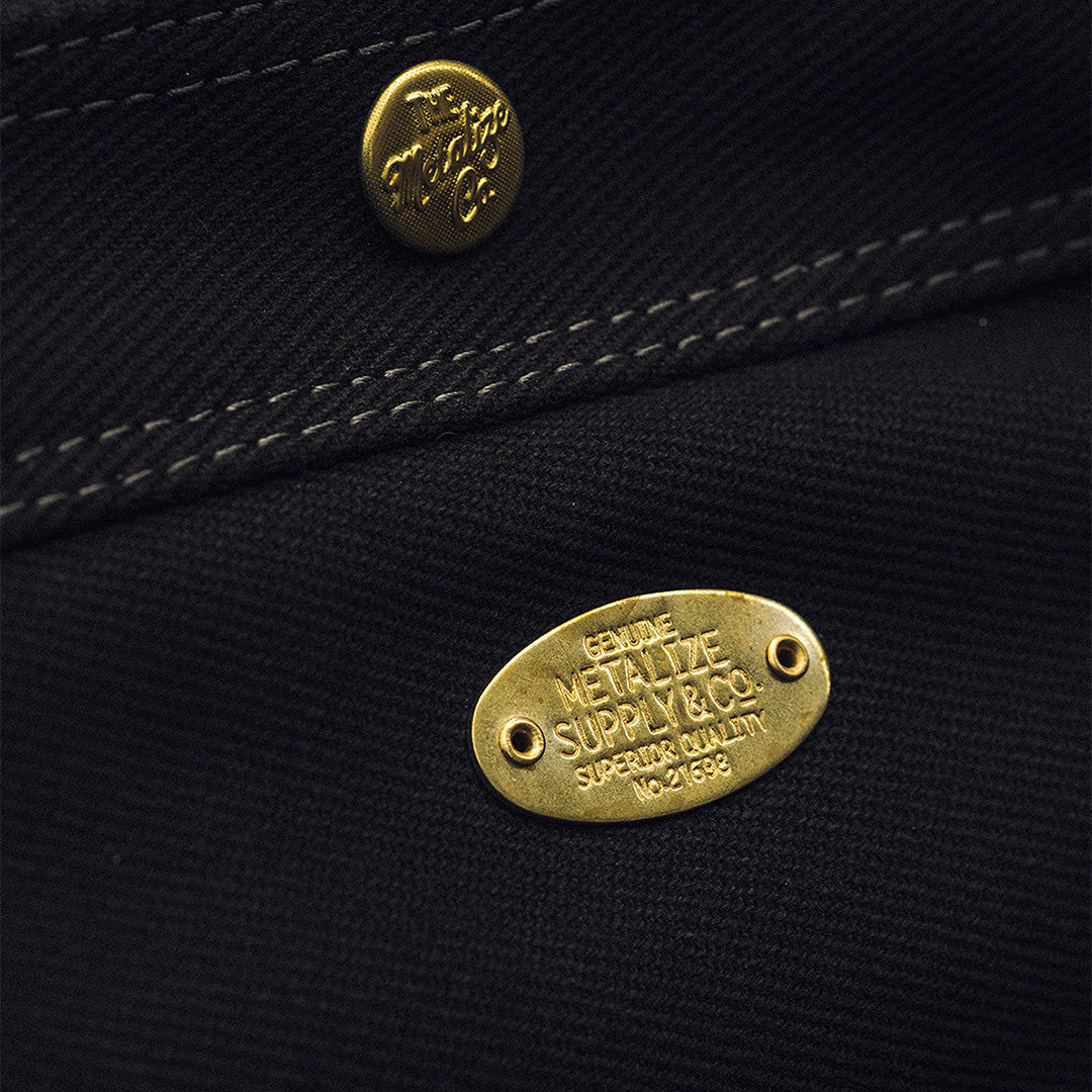 內層全採包邊製作,兩格分層的收納袋,以及側邊兩掛袋、可放手機或分類隨身小物。加寬的包底,可裝載的容量更大。另外五金部分,皆採用Metalize自製雕刻銅釦,相當細緻。