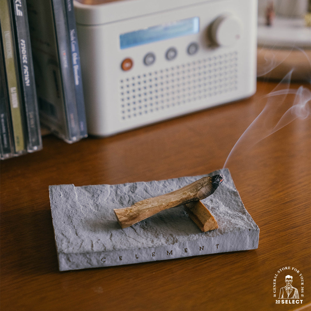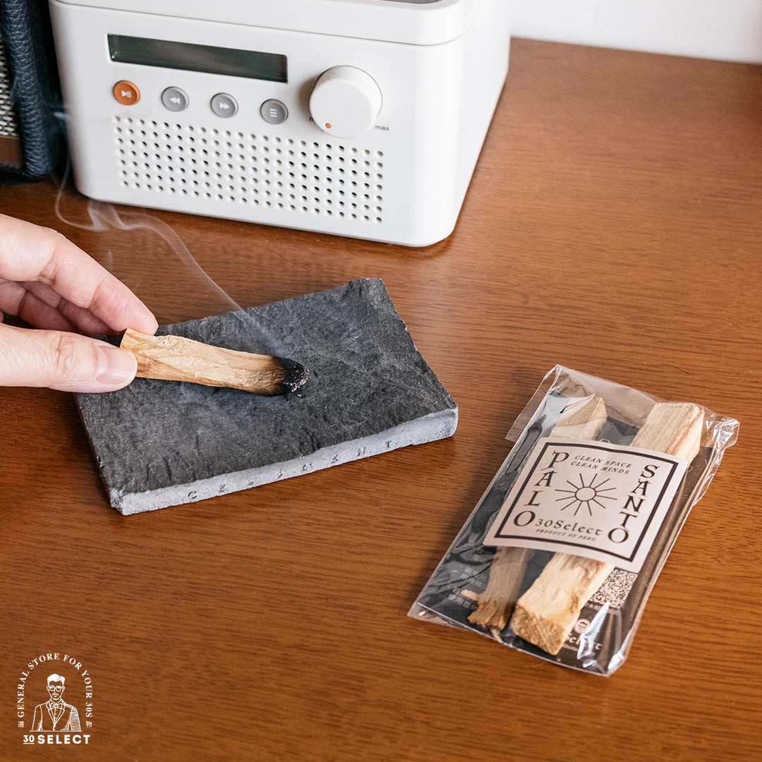 四入秘魯聖木搭配軟水泥岩片置香盤,讓空間在忙碌開始之前,先安靜下來。