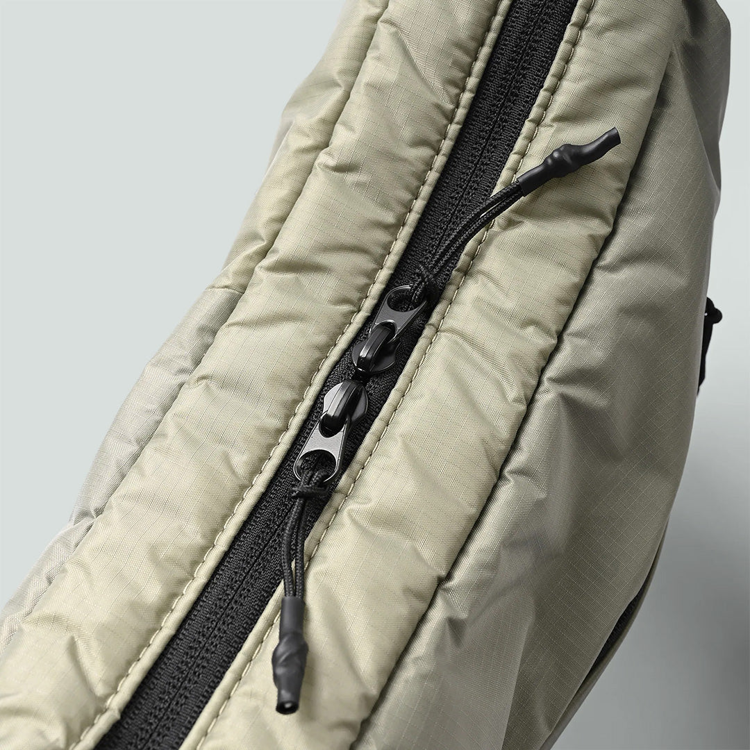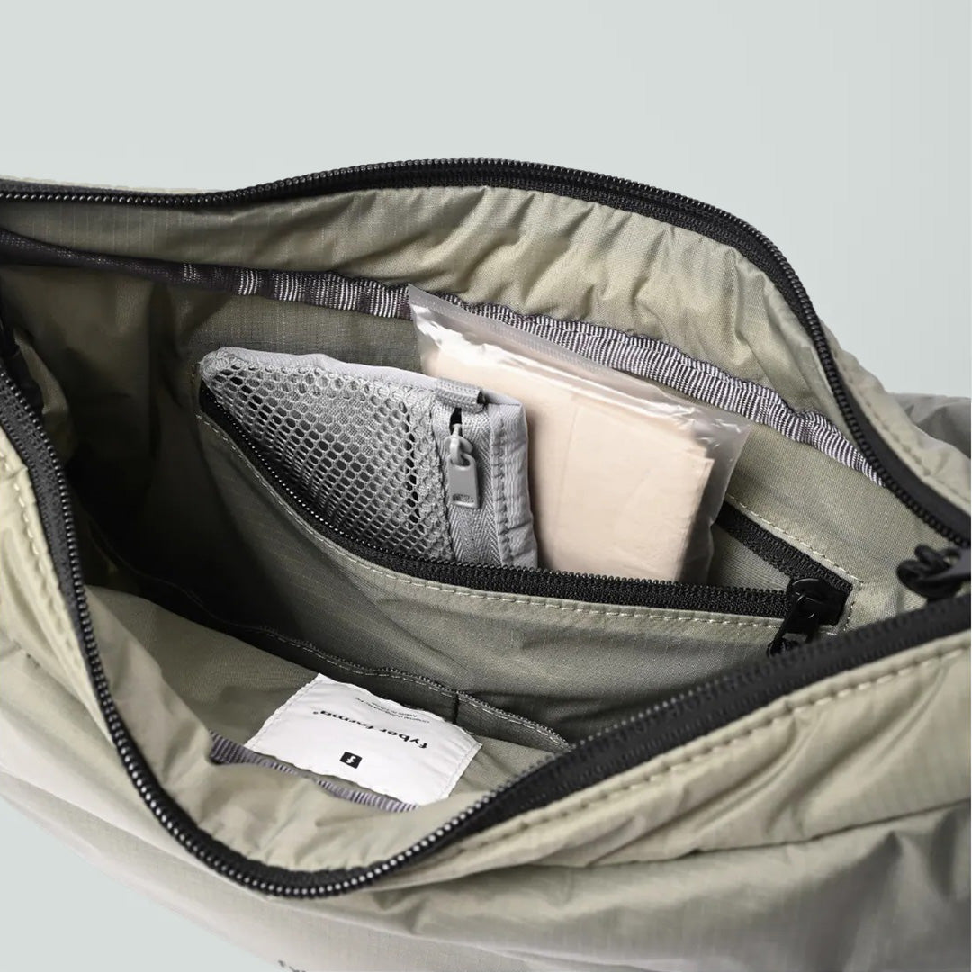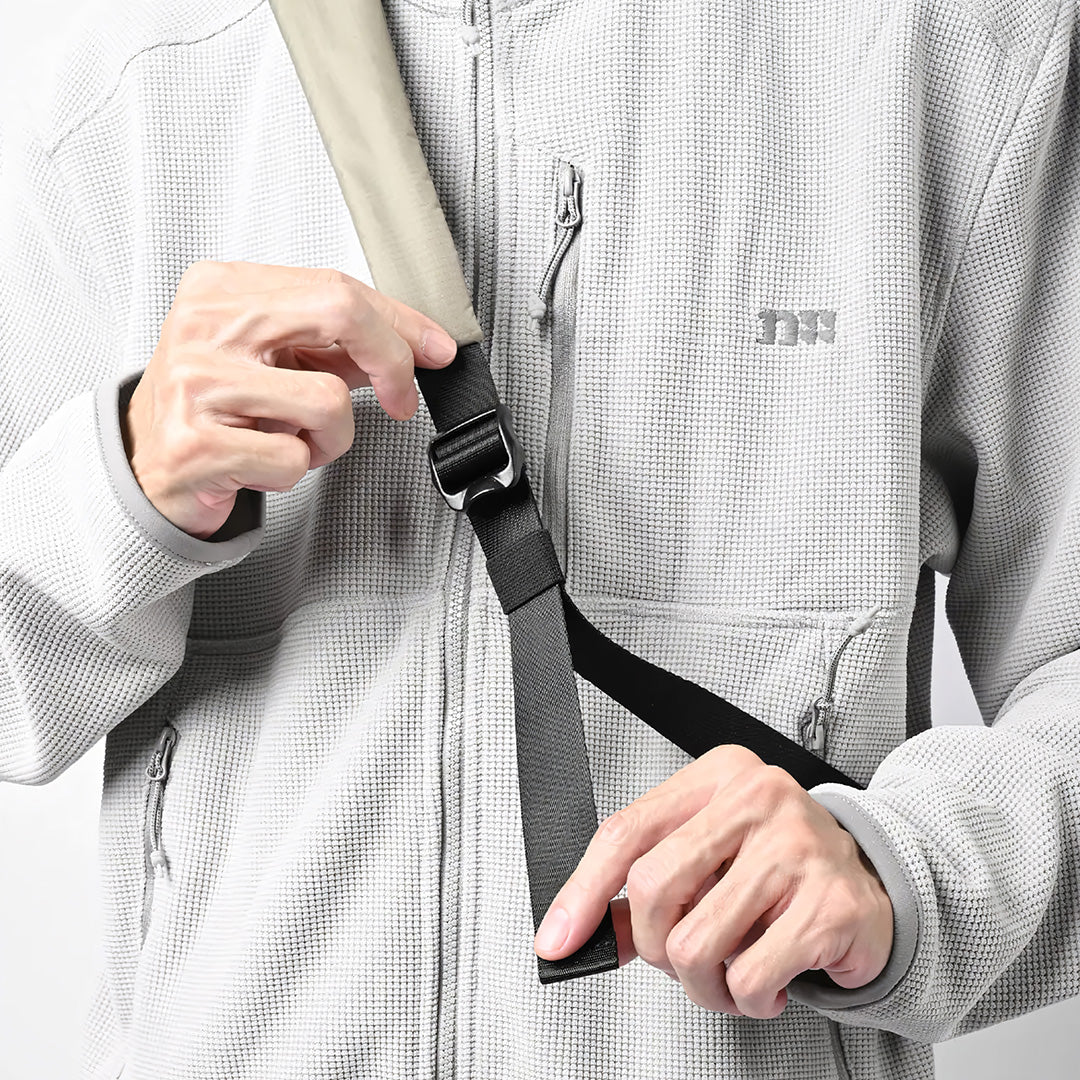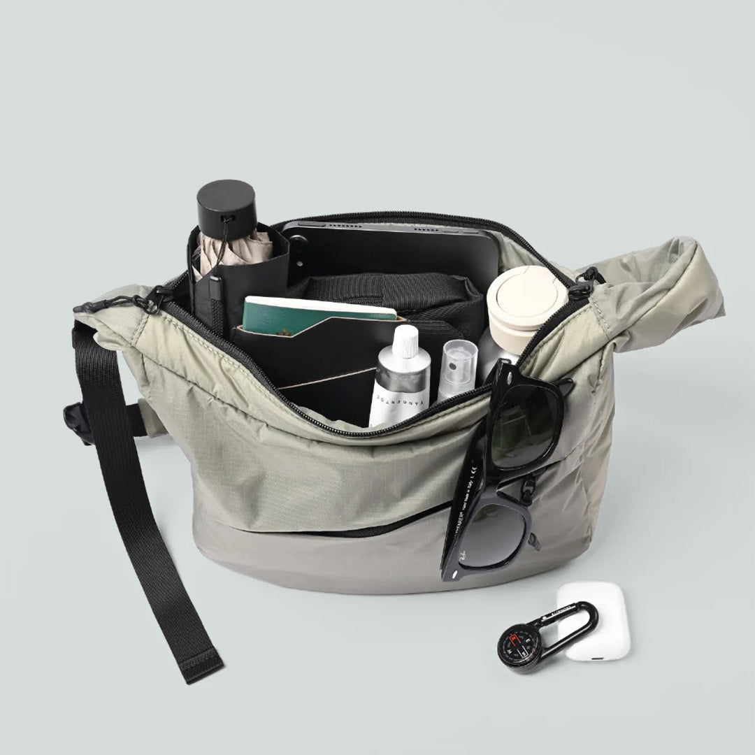 容量約 5L,中小型包身卻收納機能豐富。外層拉鍊口袋與小物插袋方便放置常用物品,內部五組口袋可以整理手機、錢包、行動電源等日常必備,出門輕旅或通勤都很實用。