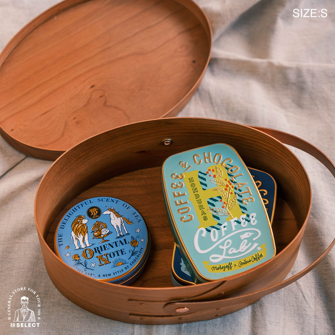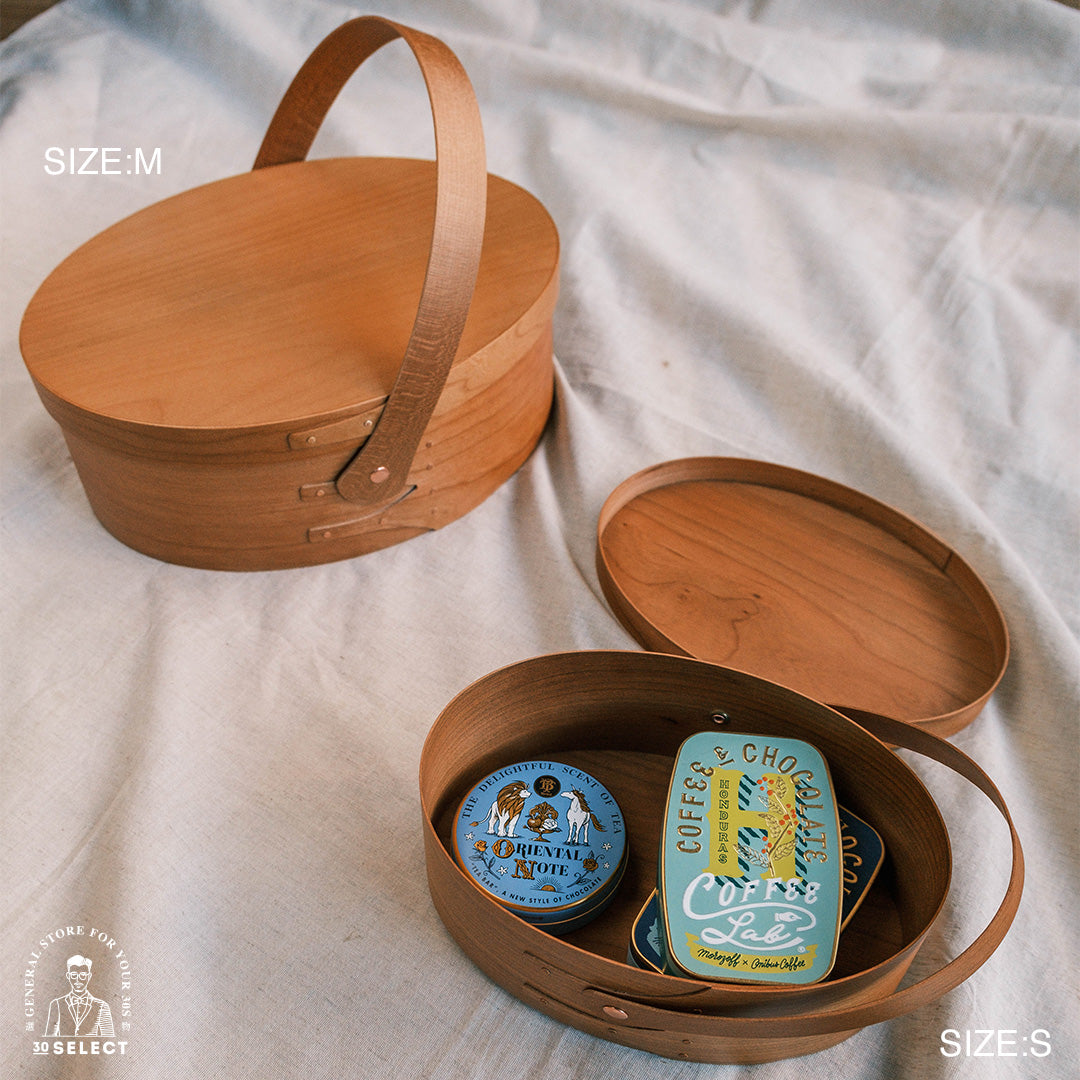 提把款提供 M、S 兩種尺寸,讓木盒更貼近生活使用。不管是收納文具、飾品、裁縫小物,當作茶點盒、禮物盒,甚至帶去野餐,都很合適。輕輕提著它出門,日常的小片刻,也會多一點優雅的儀式感。