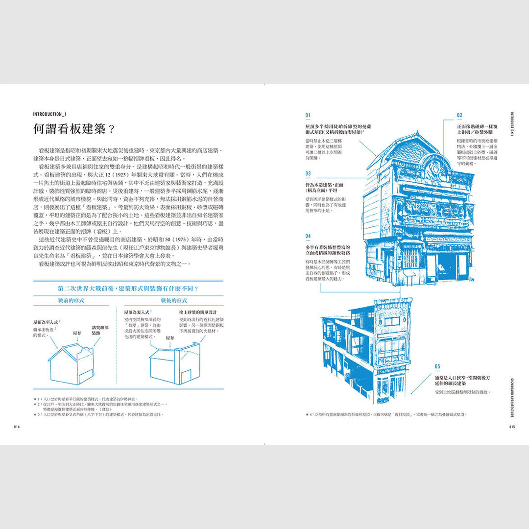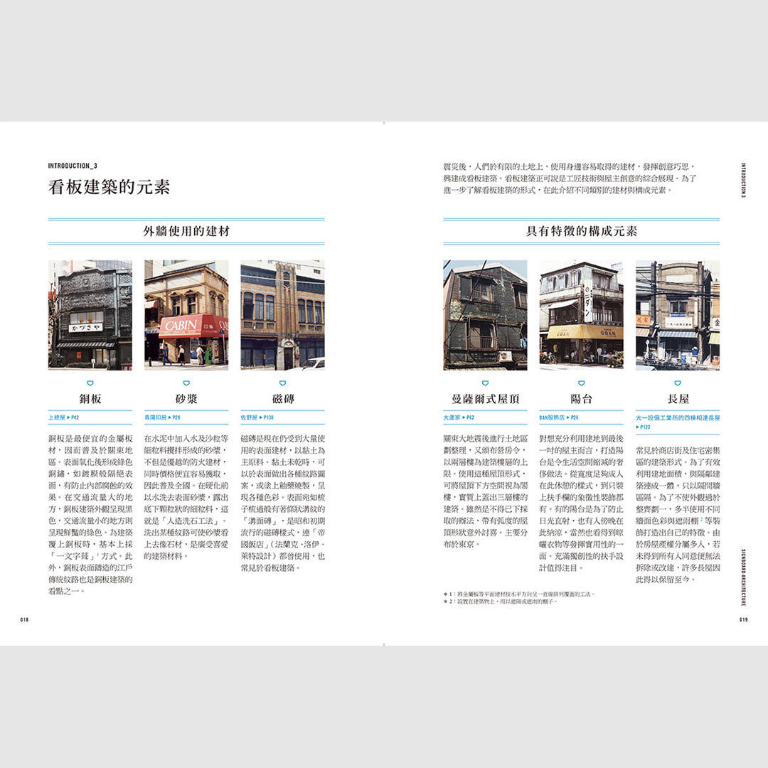 各位聽過「看板建築」這個詞嗎?究竟是招牌(看板)的一種,還是帶有廣告作用的建築物呢。拿起這本書的你,或許正是對這不熟悉的詞彙感到好奇吧。所謂看板建築,是由建築師兼建築史學者的藤森照信先生等人命名,指的是一種商店建築形式。本書內文將詳細說明,請務必一讀。