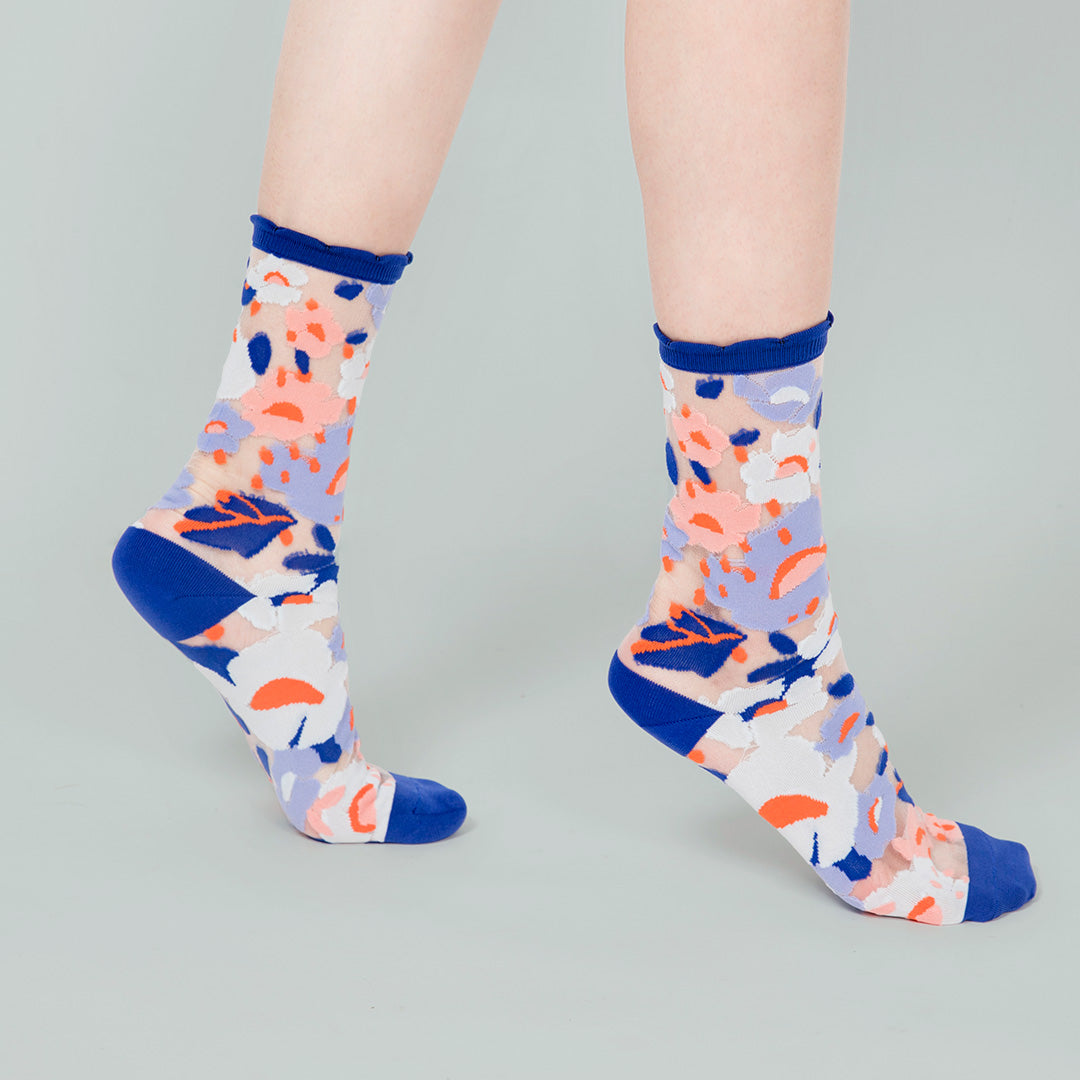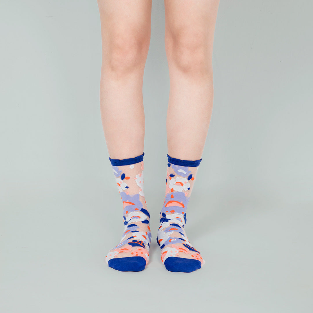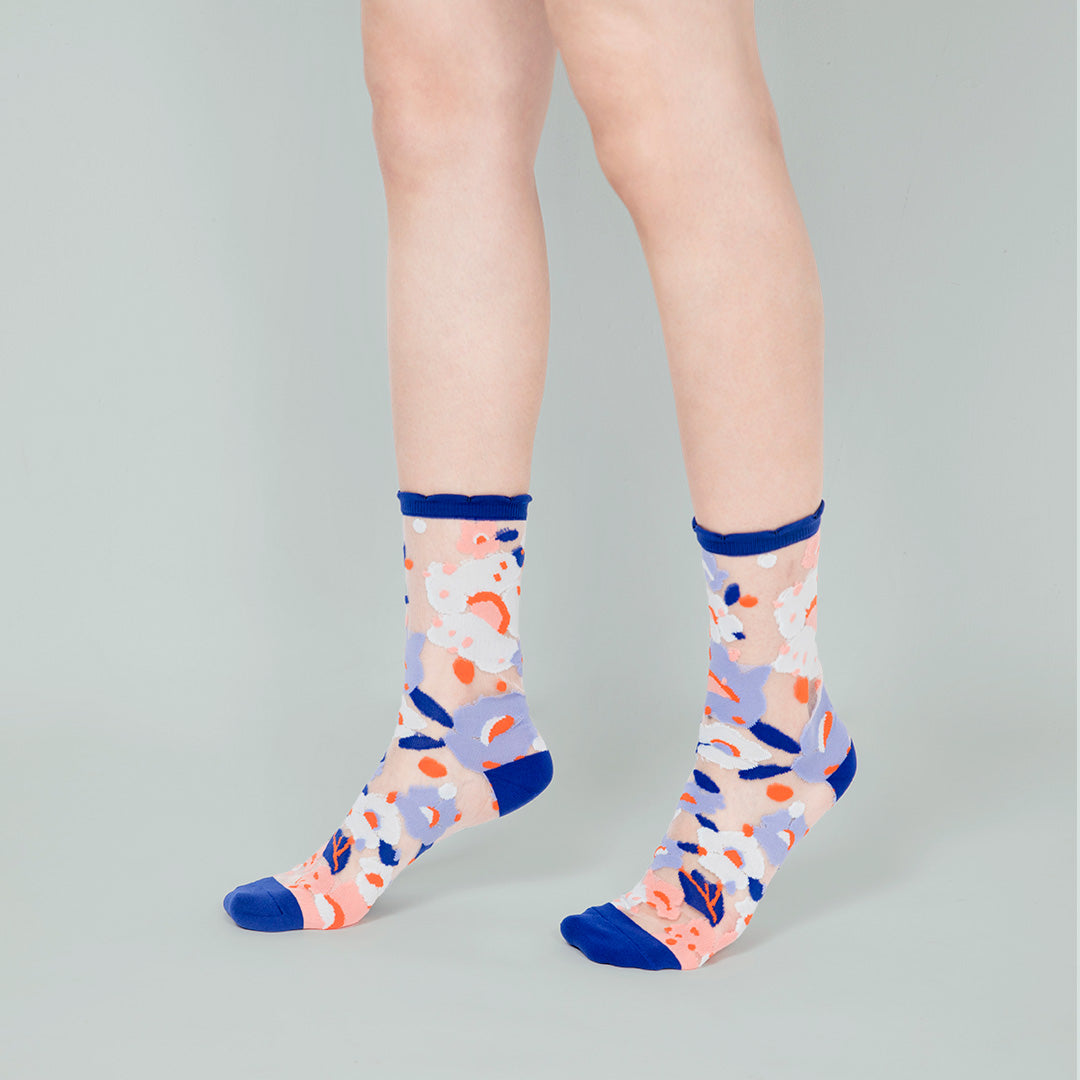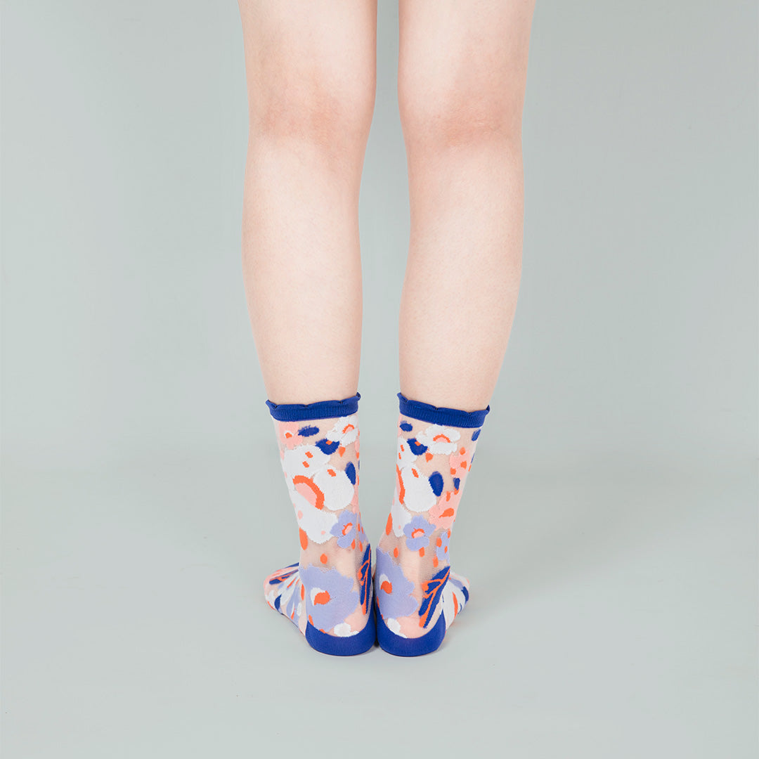波斯藍小花透紗中筒女襪