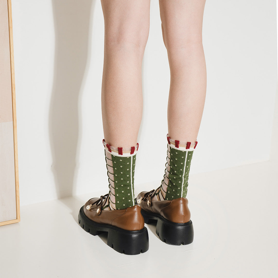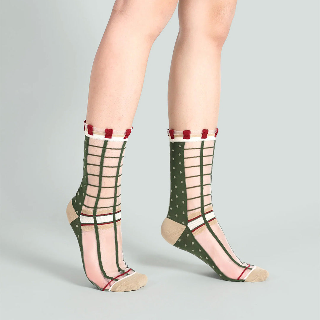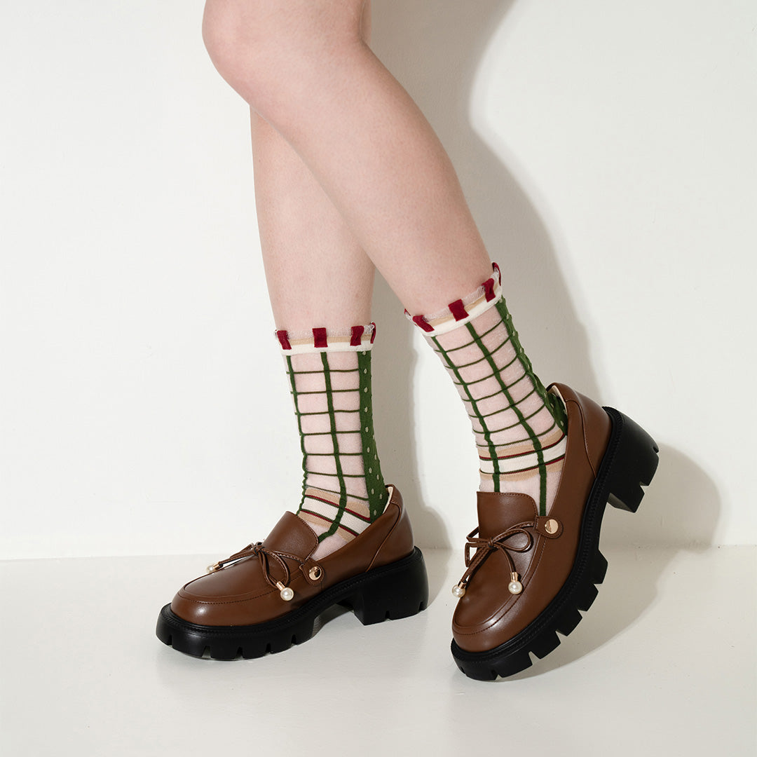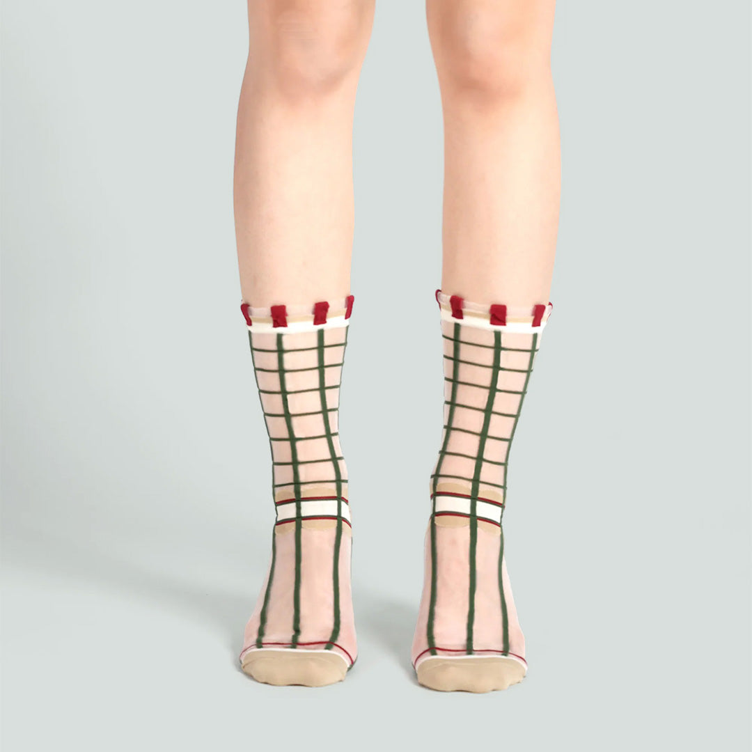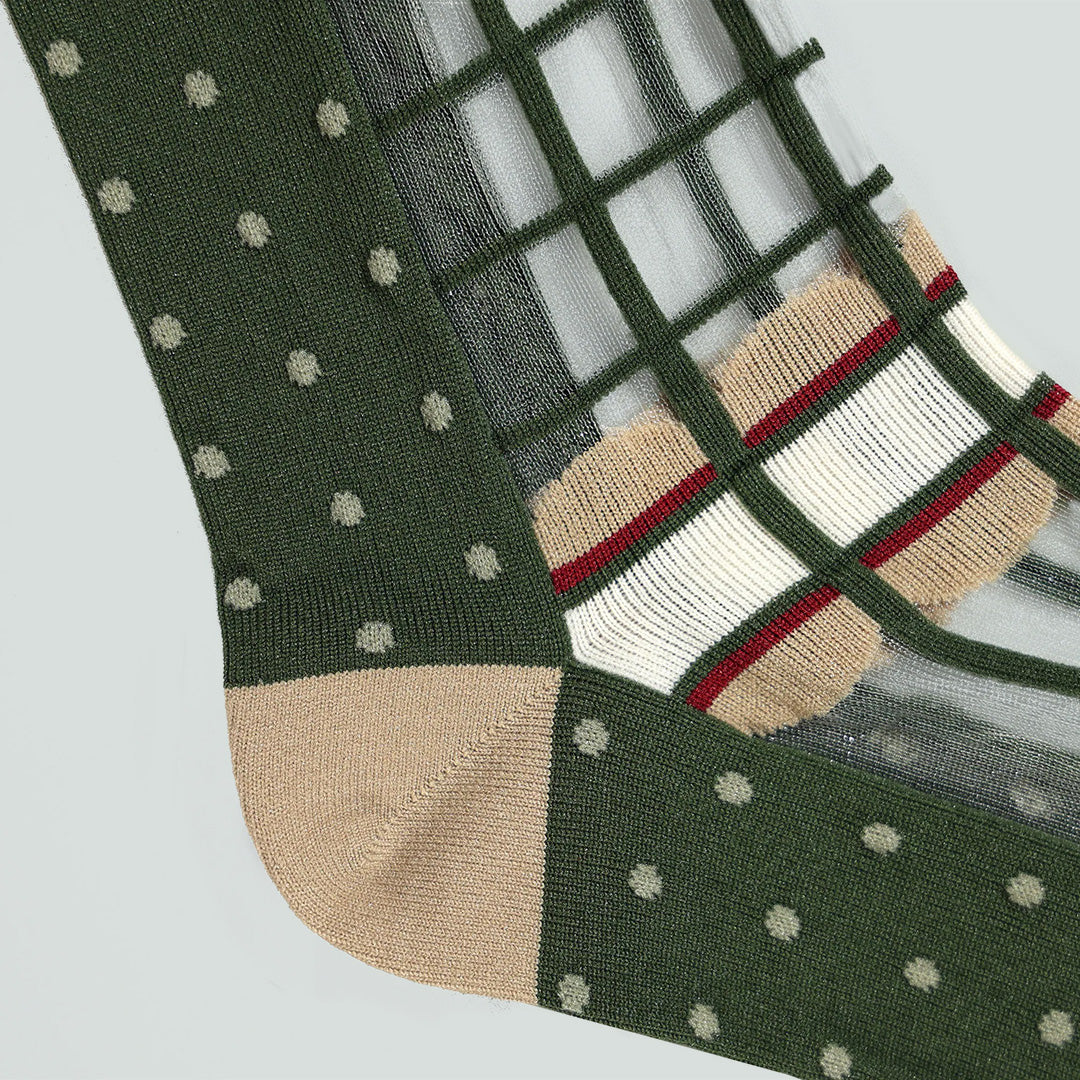 襪子不只是必需品,也能是一件日常的小藝術。這款透紗中筒襪,以鮮明大膽的配色與圖案,搭配高品質棉紗編織,不僅舒適耐穿,也替日常穿搭多了幾分趣味。