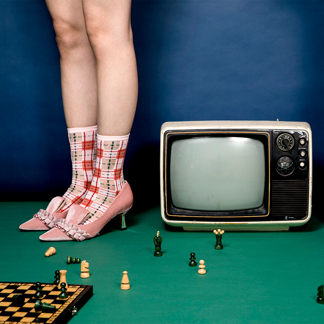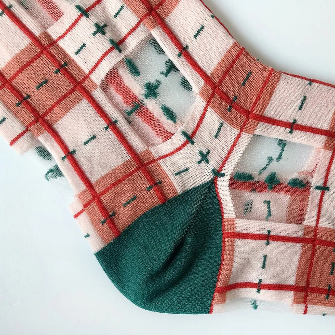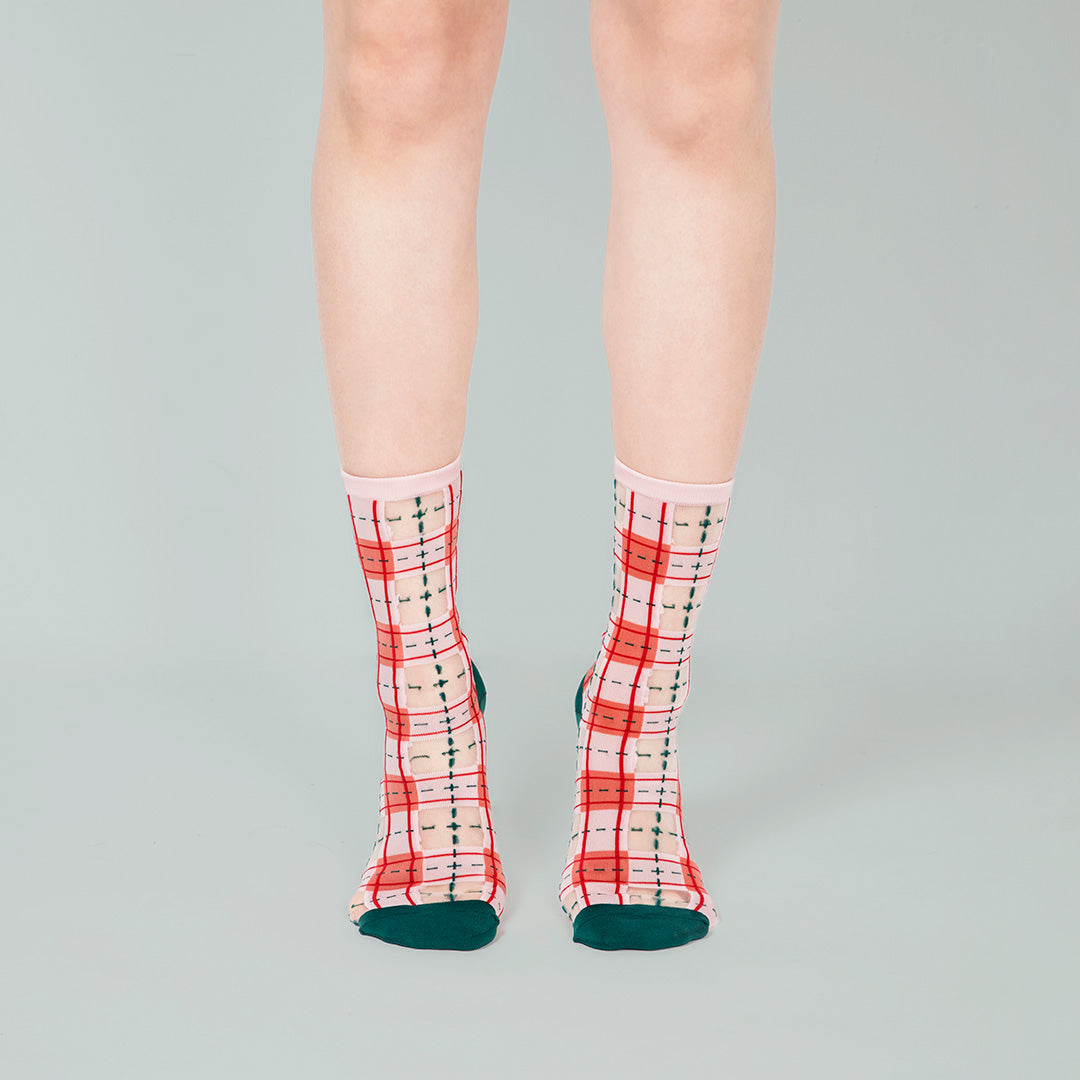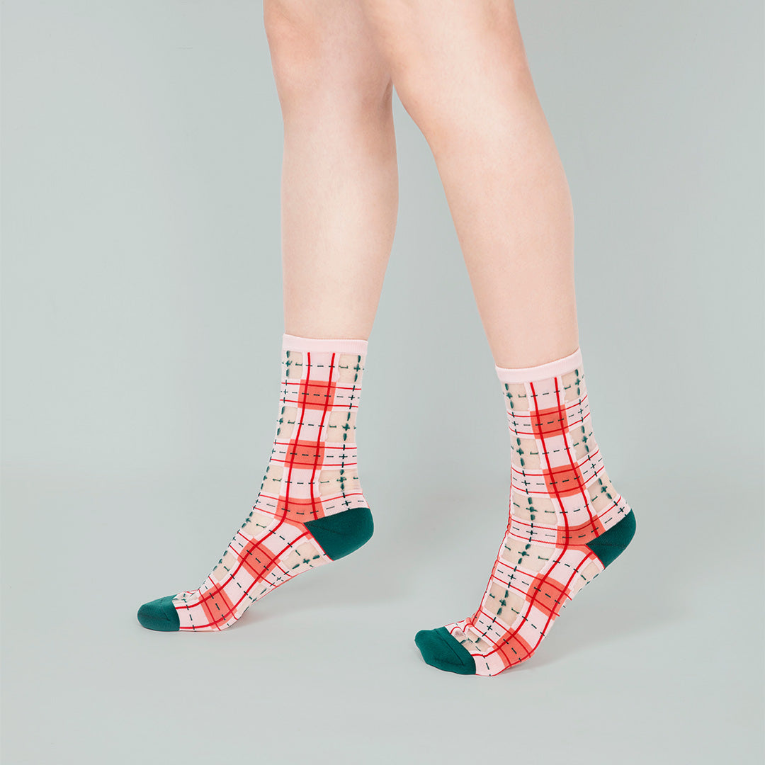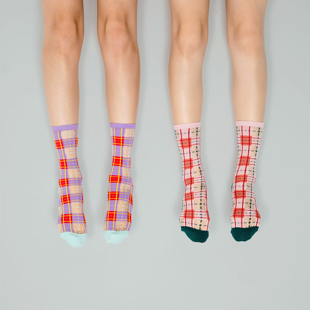 襪子不只是必需品,也能是一件日常的小藝術。這款透紗中筒襪,以鮮明大膽的配色與圖案,搭配高品質棉紗編織,不僅舒適耐穿,也替日常穿搭多了幾分趣味。