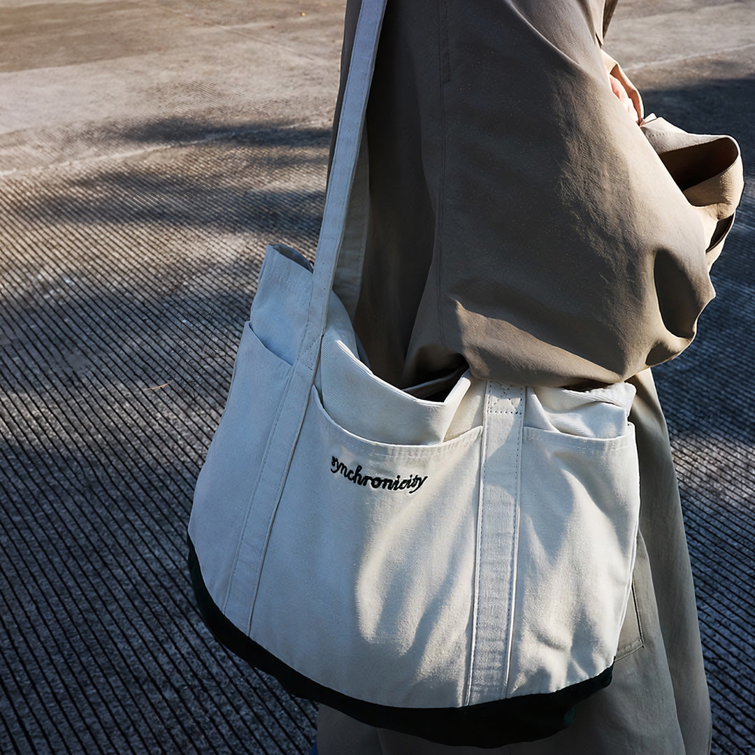 synchronicity 多口袋大容量燈芯絨托特包(白)