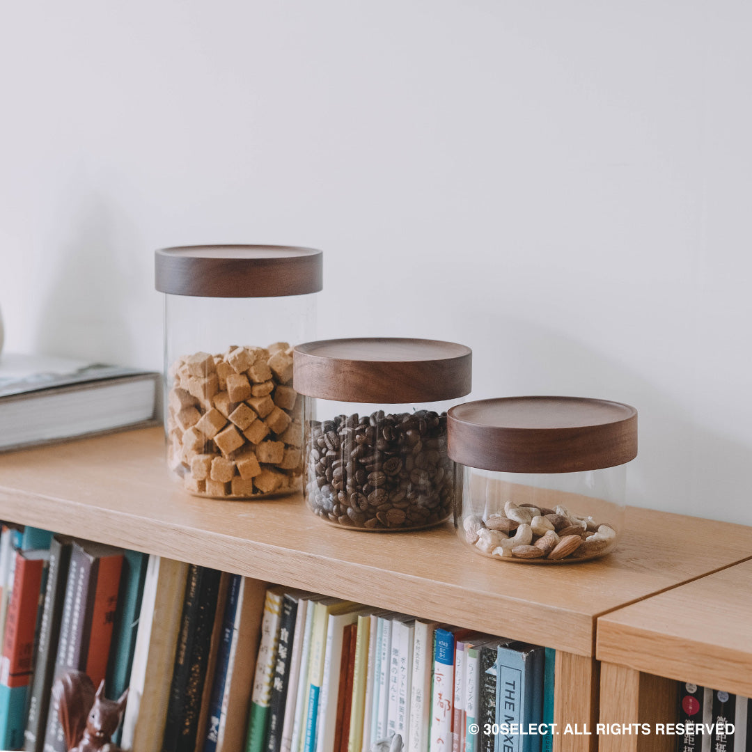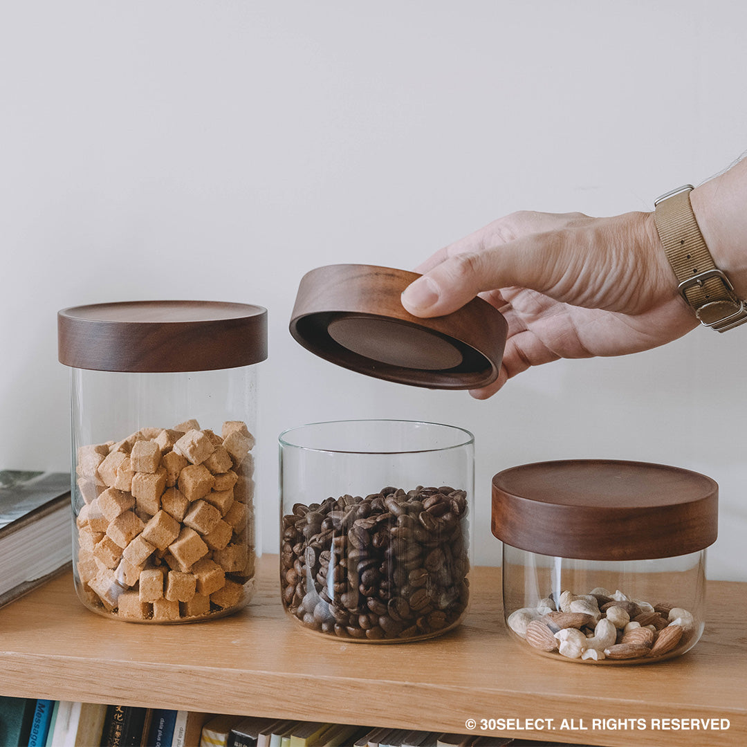 這款「台灣相思木玻璃儲物罐」,選用台灣原生種相思木製作罐蓋,木質緻密堅實、手感細膩溫潤,搭配高透明度的厚實玻璃罐身,整體圓潤沉穩,與廚房的各種器皿自然融合,為日常收納帶來更高質感的呈現。